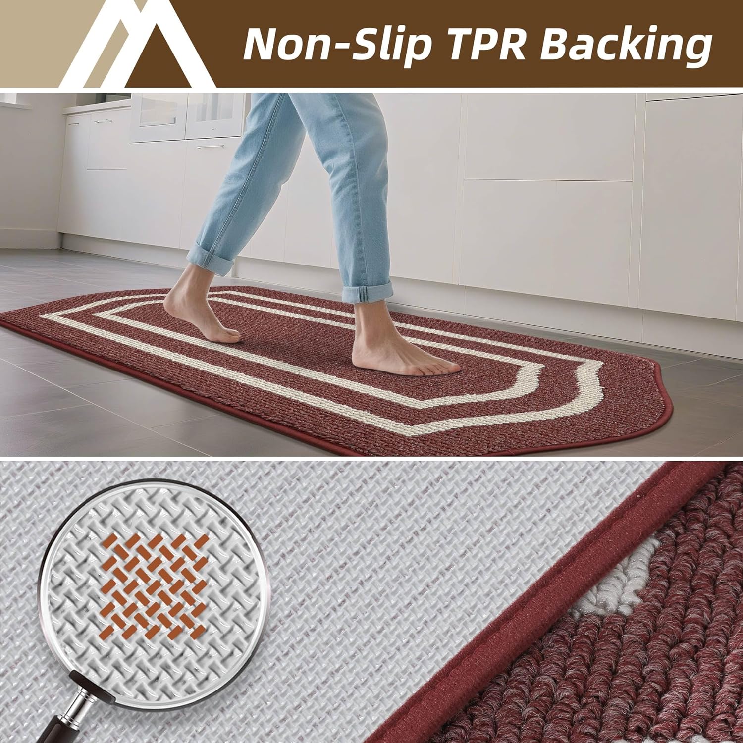 COSY HOMEER Long Kitchen Floor Mats for in Front of Sink Super Absorbent Kitchen Rugs and Mats 24"x79" Non-Skid Kitchen Mat Standing Mat Washable,Polypropylene,Red,Frame