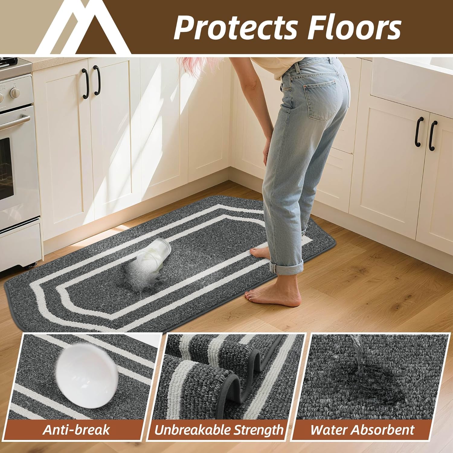 COSY HOMEER Long Kitchen Floor Mats for in Front of Sink Super Absorbent Kitchen Rugs and Mats 24"x79" Non-Skid Kitchen Mat Standing Mat Washable,Polypropylene,Dark Grey,Frame