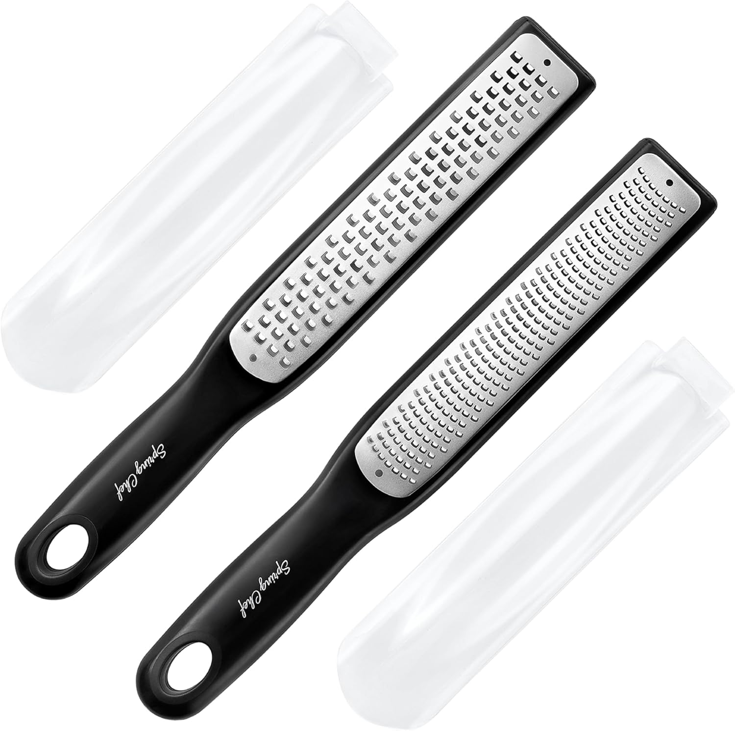 Spring Chef Premium Lemon Zester Grater with Handle - Ginger, Nutmeg, Garlic Grater - Heavy Duty Kitchen Tool - Stainless Steel Citrus Zester with Blade Cover - Fine & Coarse Shred, Set of 2, Black