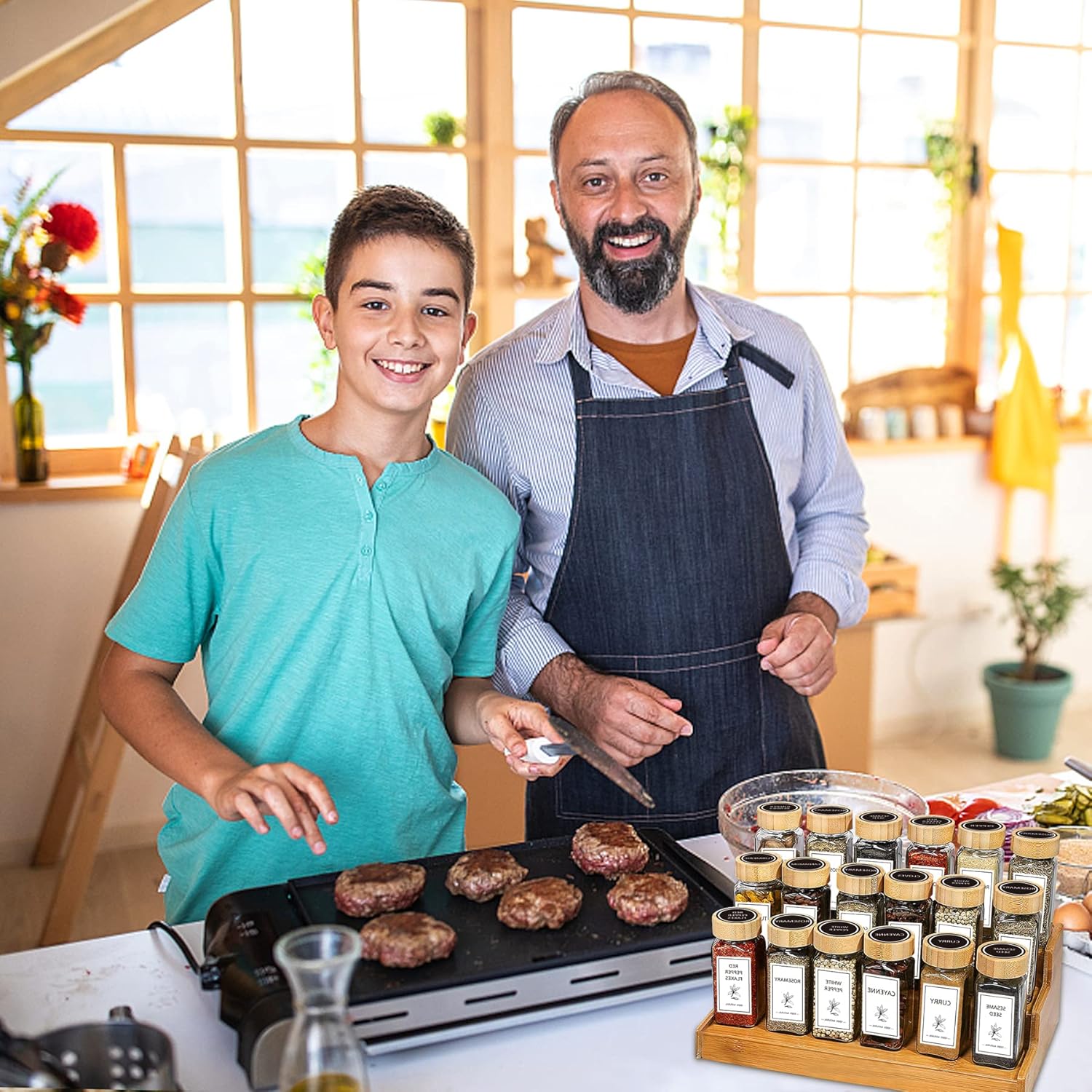 - Great Surprise as Gifts: Practical and stylish beauty is what we have been pursuing, seasoning jars can not only be used to contain a variety of spices but are also decorative, the clear glass spice jars are filled with different colors of spices neatly and consistently placed so that people are pleasing to the eye. Especially on Christmas, Thanksgiving, and other major holidays, spice jar is a good choice as a gift to your family or friends, spice jar set makes easy cooking away from the mess.