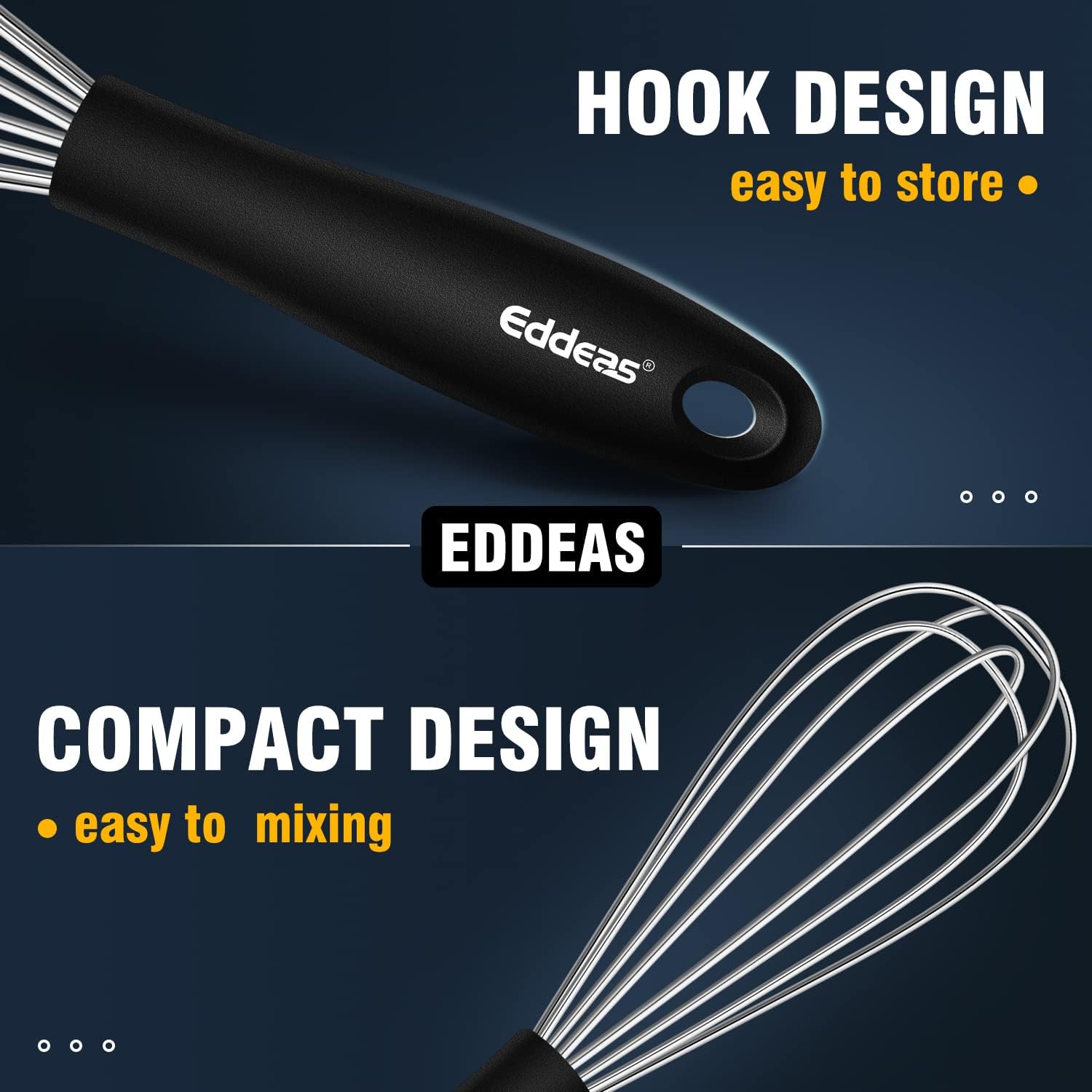 - ※ SUPERIOR PERFORMANCE & MULTIFUNCTION- Eddeas Small Whisks allow to withstand high heat resistant up to 450℉. The Mini whisk will provide you vigorous whipping and aerating.