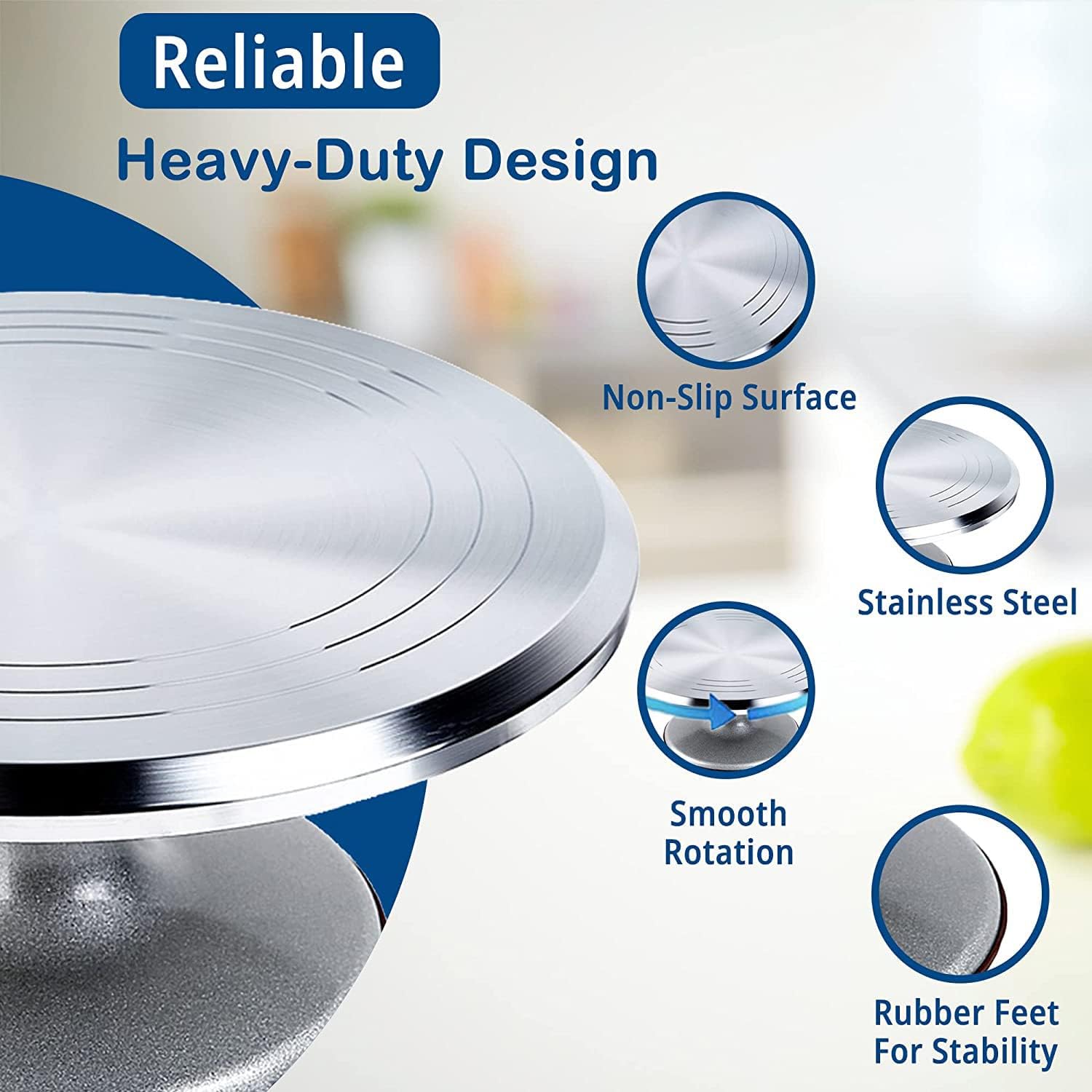 - ✅ HEAVY DUTY NON-SLIP DESIGN - Revolving decorating stand features an exceedingly solid aluminum alloy construction, non-slip surface and rubber feet for maximum stability & precision cake crafting.