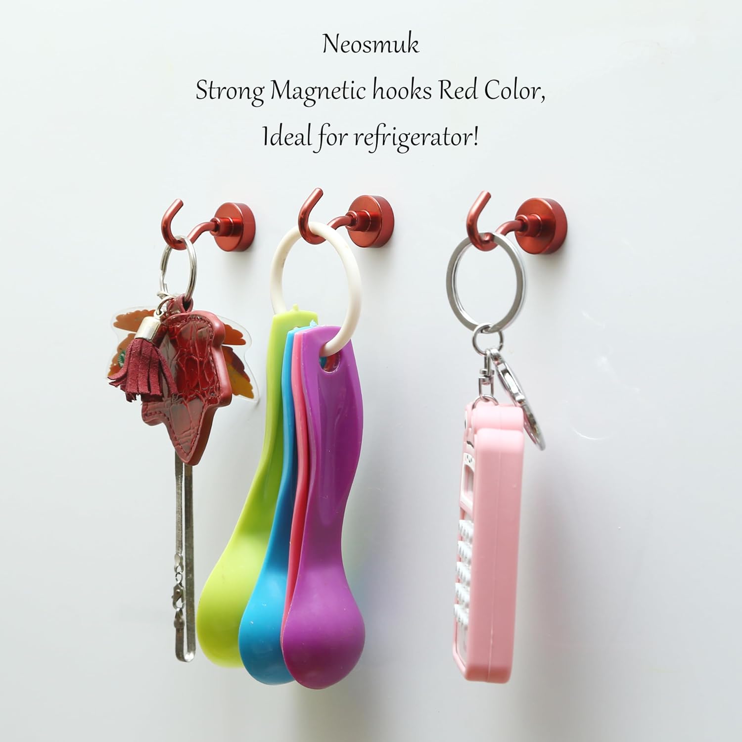 Neosmuk Magnetic Hooks,30lb+ Heavy Duty Earth Magnets with Hook for Refrigerator, Extra Strong Cruise Hook for Hanging, Magnetic Hanger for Cabins, Grill (Red, 10 Pack