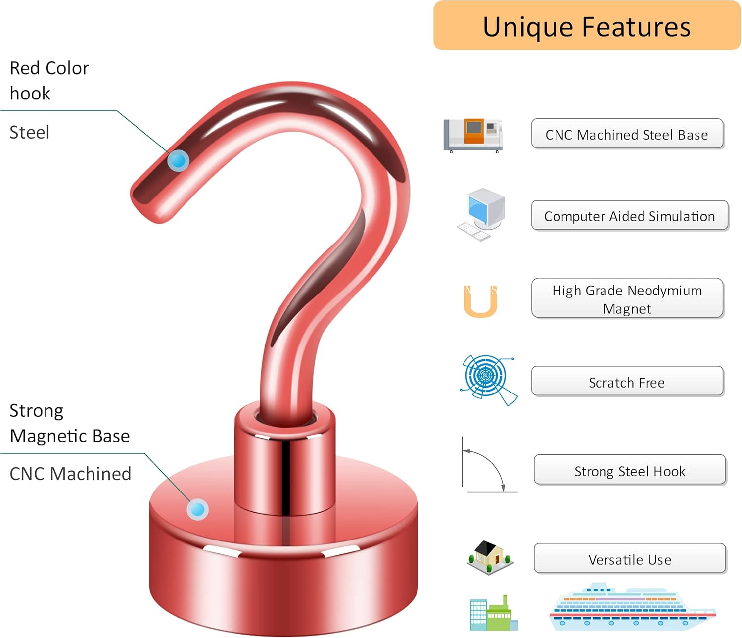 - ✔ SUPER POWERFUL - Amazing strong, sturdy, and heavy-duty metal magnetic hook with a CNC machined steel base, embedded with a high grade latest generation of ‘magnetic king’ i.e. super Nd-Fe-B, this magnetic hook offers strong pulling force under steel. The magnetic hook is perfect for hanging items on the fridge in the kitchen.