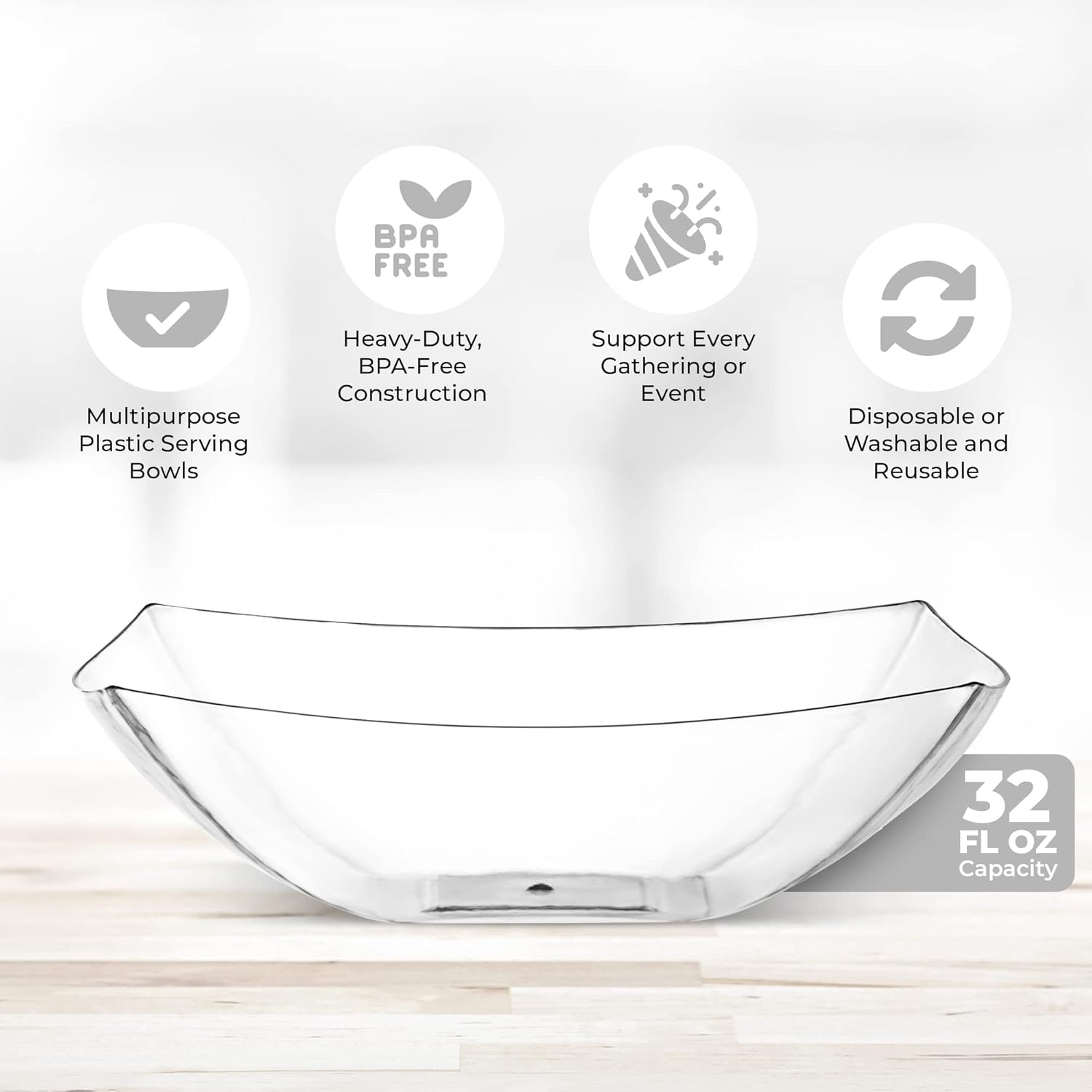 - MULTIPURPOSE USE: These 32 oz clear plastic serving bowls are great for any occasion. Whether you're hosting a salad bar, serving snacks, candies, chips, or even using them for arts and crafts, these thanksgiving serving bowls meets all your needs. Enhance your party setup with these practical and stylish bowls that fit seamlessly into any event. Use them as candy dishes, chip bowls for parties, clear plastic bowls, taco bar serving set for a party, and party bowls.