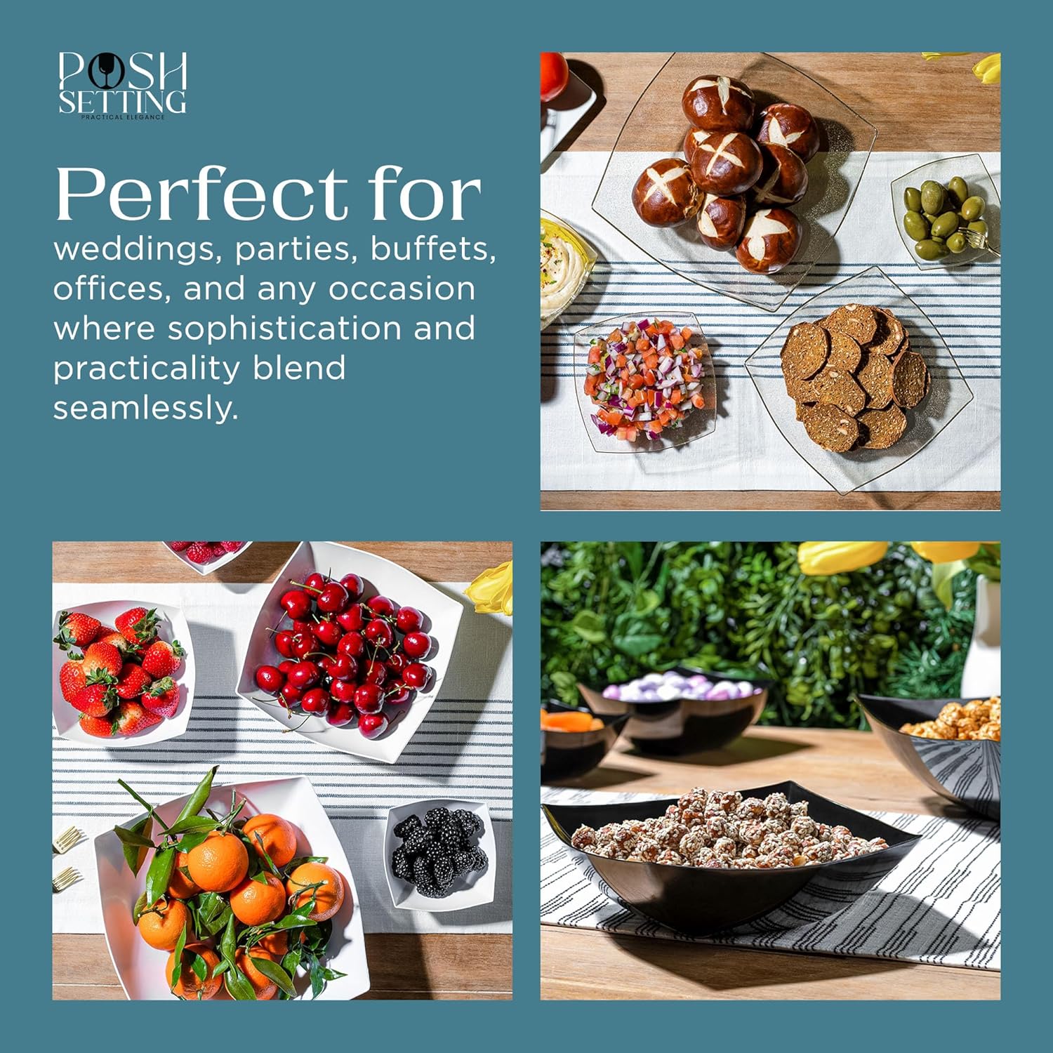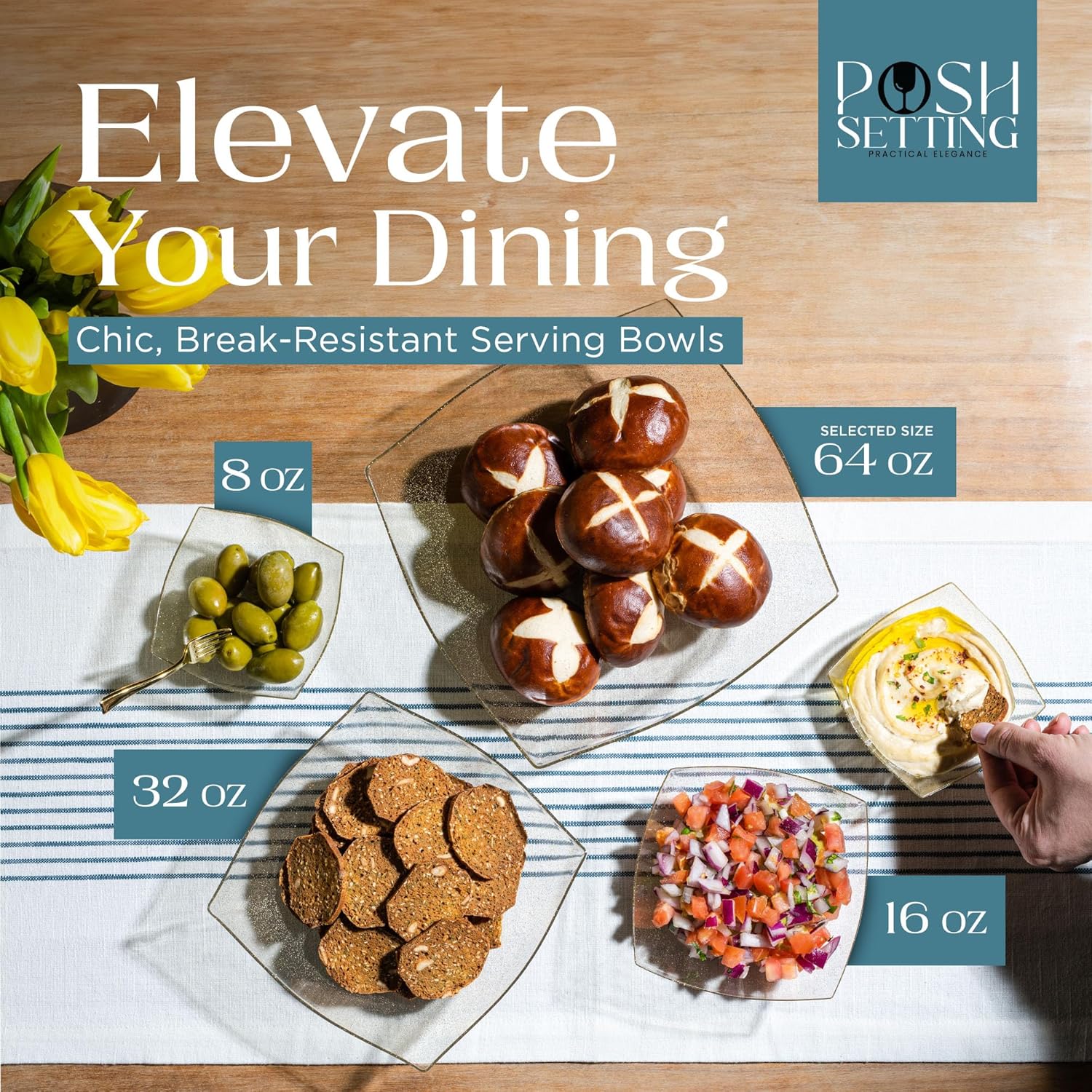 Posh Setting - Gold Glitter Plastic Serving Bowls for Party (64oz - 4 Pack) Square Bowls, Disposable Chip Bowls, Candy Bowls for Party Table, Salad Bowls for Party, Candy Containers for Candy Buffet