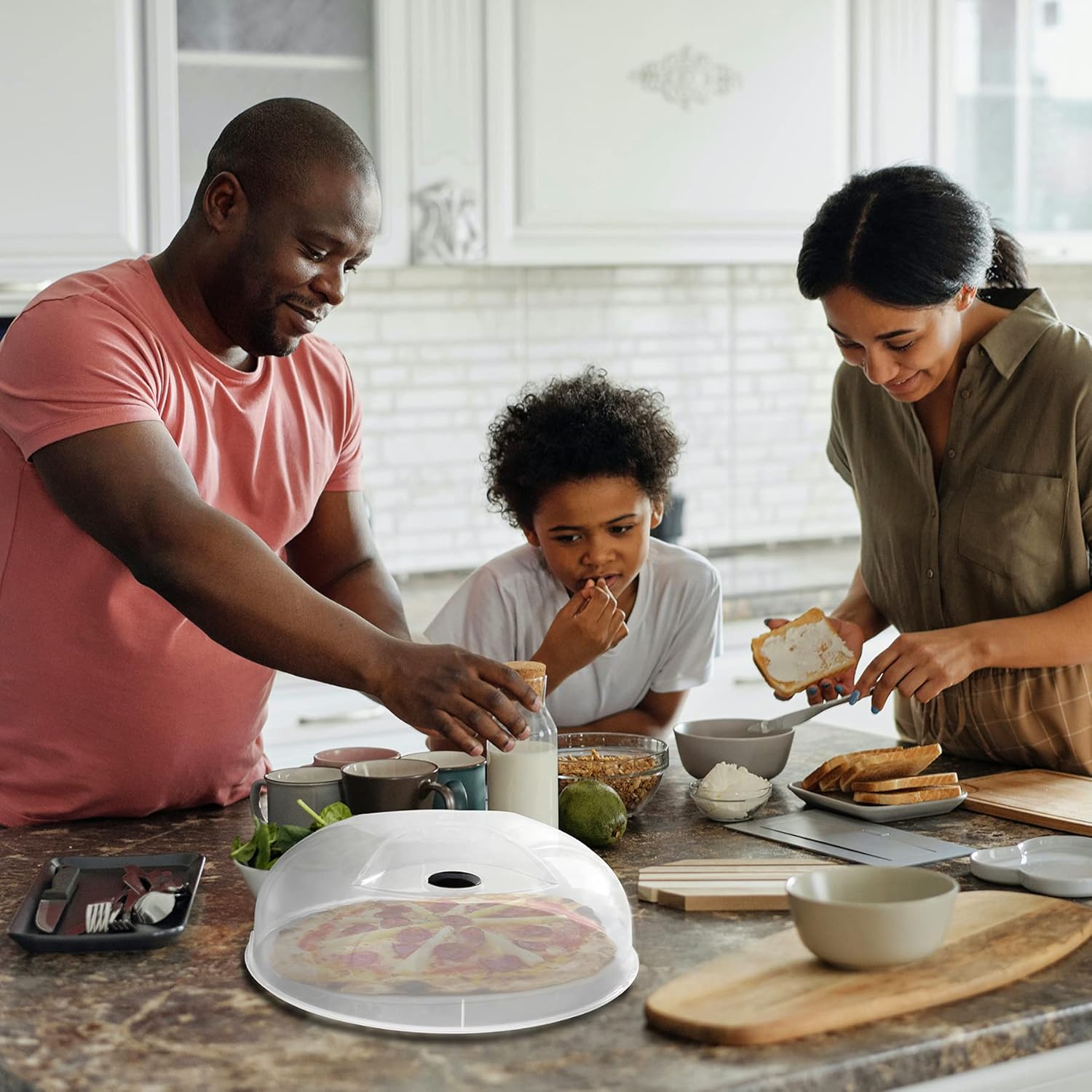 - 【KEEPS MICROWAVE CLEAN 】: Microwave splatter cover keeps the splatter off the microwave;keeps steam contained for more even reheating;easy to clean.perforated steam vents to allow the moisture to escape