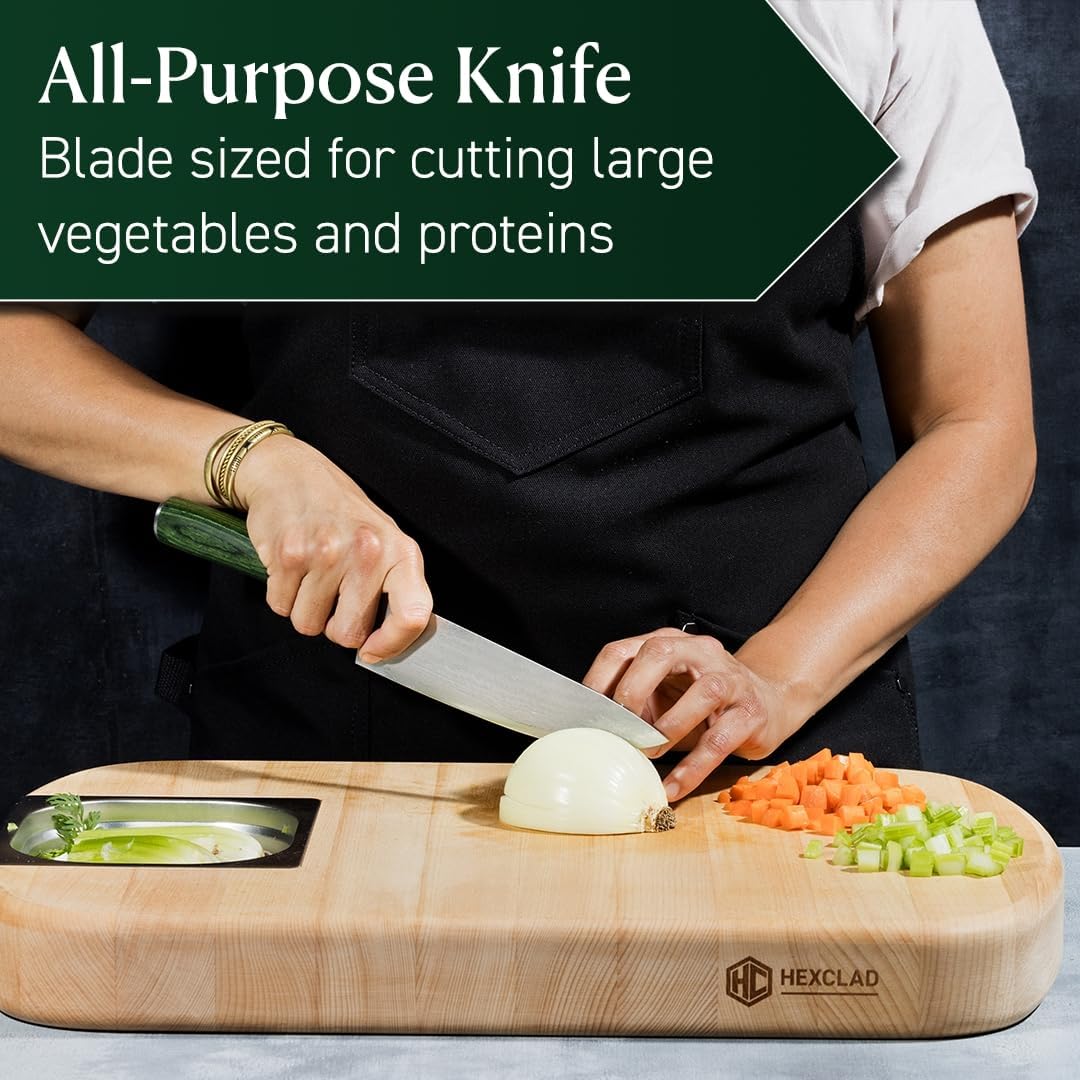 HexClad Chef's Knife, 8-Inch Japanese Damascus Stainless Steel Blade, Pakkawood Handle