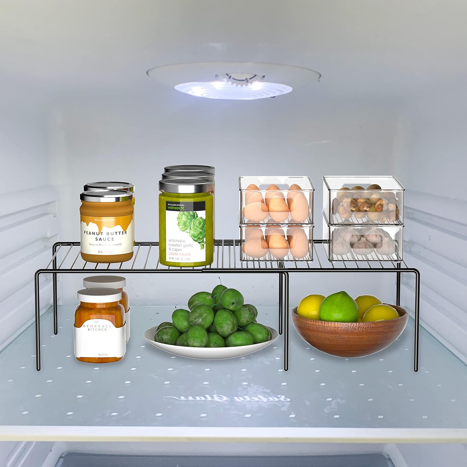 Redrubbit Expandable Metal Rustproof Kitchen Counter and Shelf Rack, 4 Piece Set of 2, Space Saver for Kitchen, Fridge, Bathroom