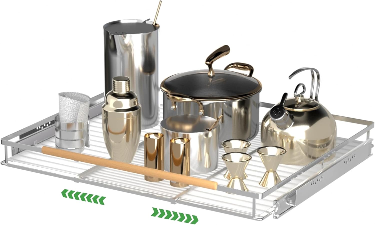 Adjustable Pull Out Shelves for Kitchen Cabinet, Expandable Pull Out Drawders for Cabinets, Pull Out Cabinet Organizer Roll Out Drawers, Stainless Steel, Cabinet Width 16.2" - 26.2", 1 Pack