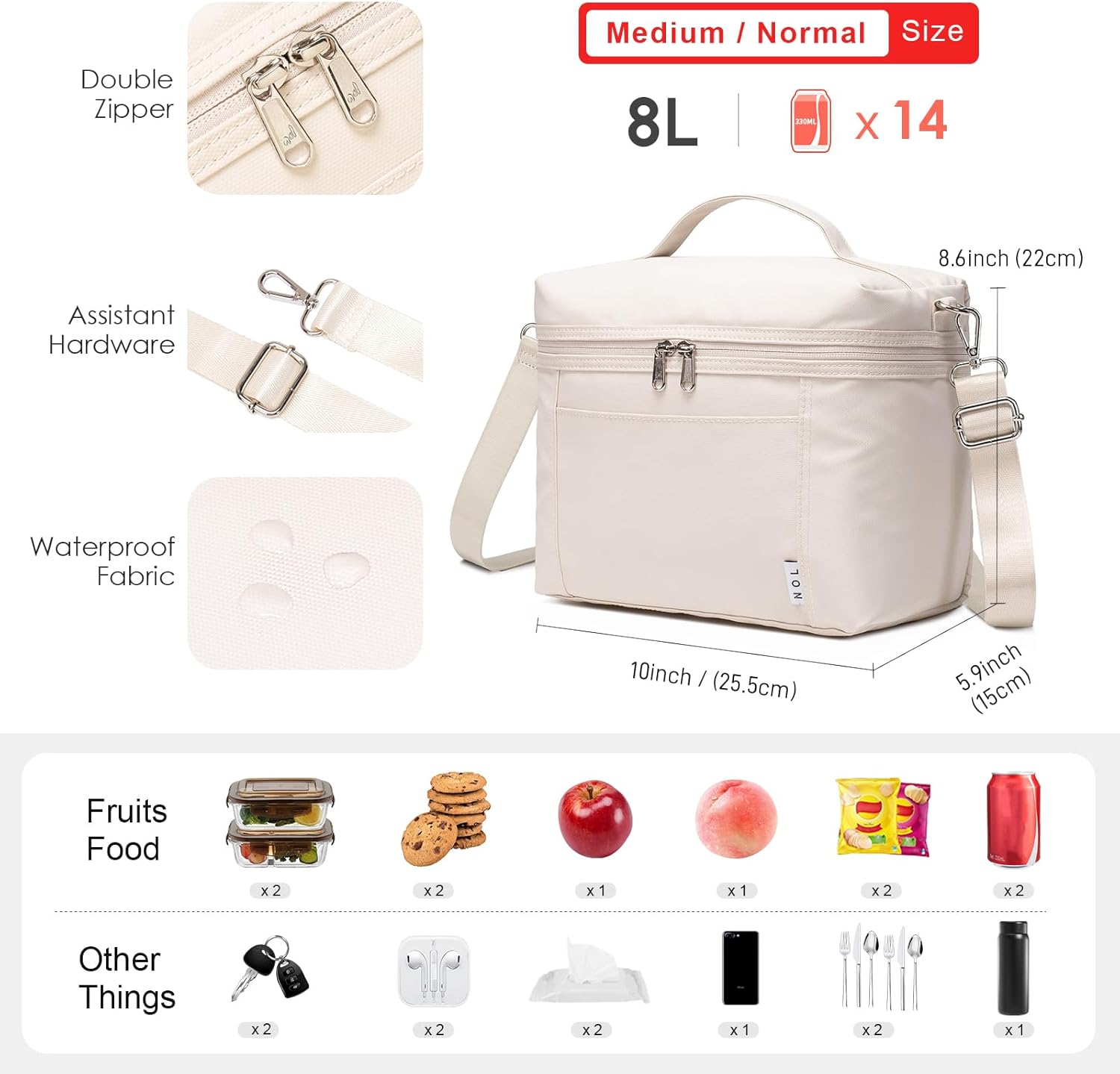 NOL Natural Organic Lifestyle Insulated Lunch Bags for Women Cooler Bag Lightweight Nylon Waterproof Lunch Box For Work(Medium, Cream