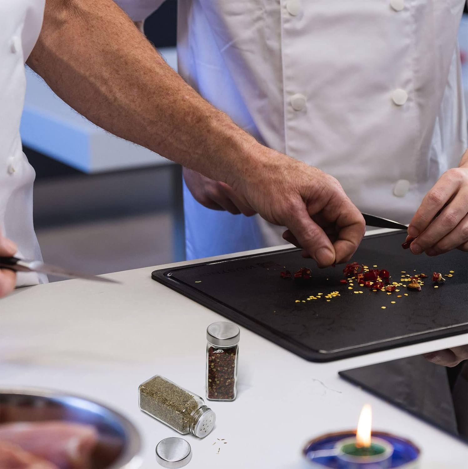 - SQUARE SPICE BOTTLES - 6 clear glass spice jars are ready for your favorite spices! Organize your kitchen cupboards and spice racks using our seasoning containers.The lid of the spice jars is protected by a bright blue film( peelable ).