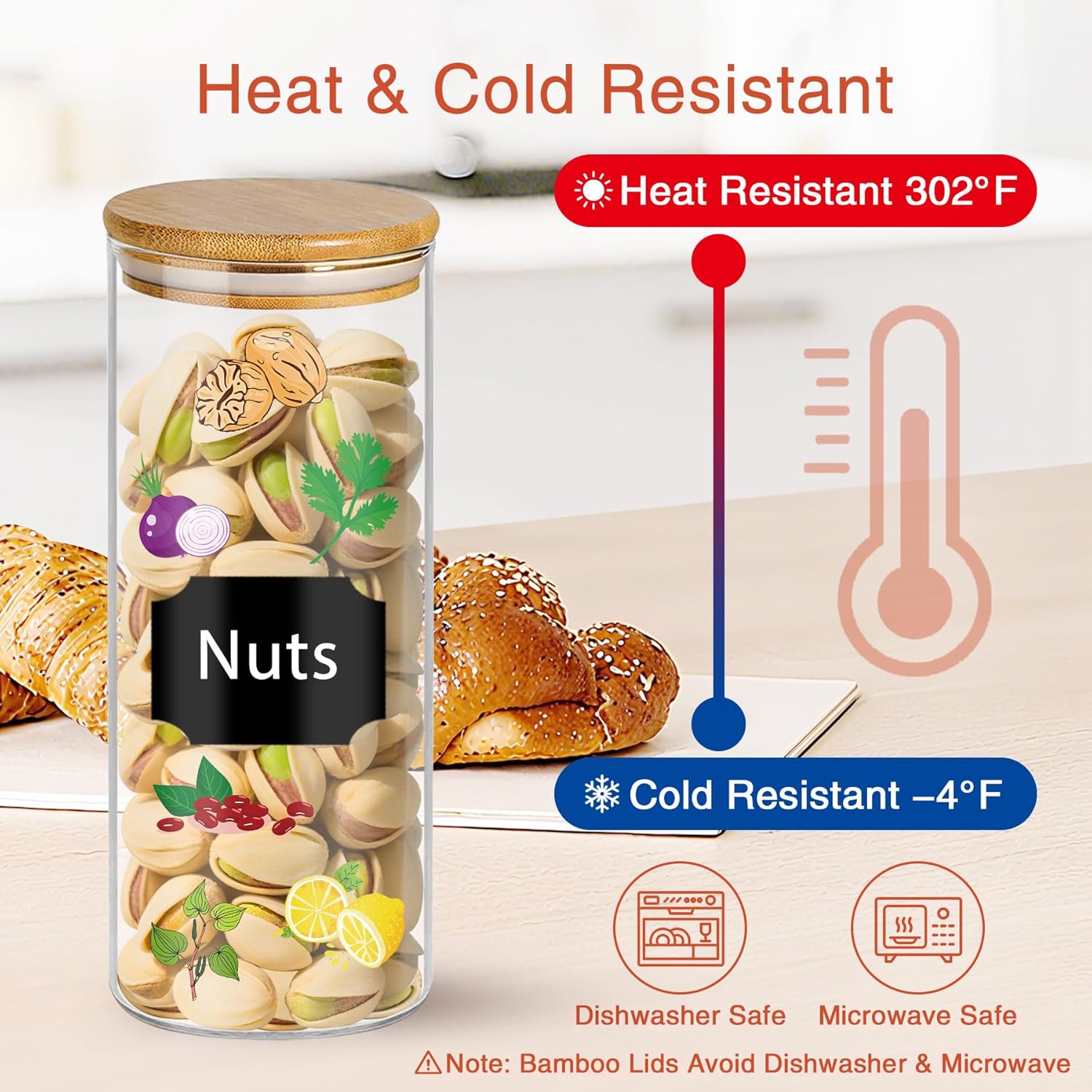 - 【Effortless Organization】Stay perfectly organized with 58 colorful labels included with these kitchen jars. The uniform airtight glass pantry storage containers set with bamboo lids stack neatly to maximize space - ideal for small kitchens storing flour, nuts or pet treats.