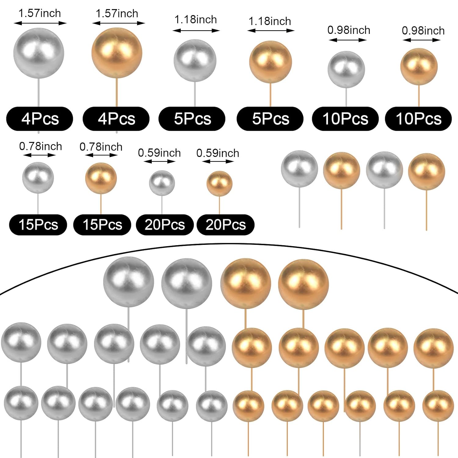 108 Pcs Balls Cake Topper DIY Cupcake Insert Foam Balloons for Cake Baking Wedding Anniversary Birthday Decoration(Gold, Silver,Multi Sizes)