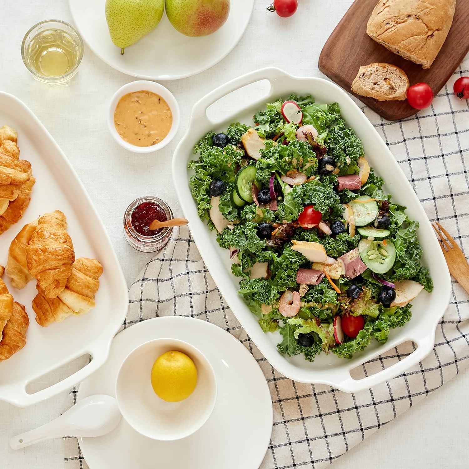 - Convenient Loop Handles Design: DOWAN Ceramic white serving platters are deeper with built-in handles on both sides, making it easy to move foods around at any time; This platter set is designed with an ergonomic rectangle shape, and its wide handles have a comfortable grip for transporting food over long distances