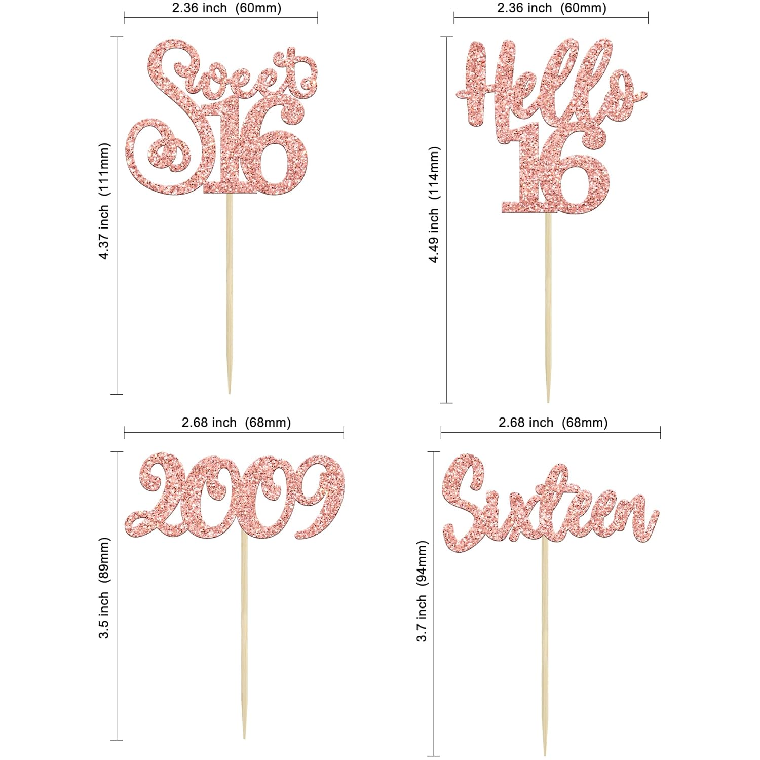 - 💕💕Premium Material: These 16th Birthday Cupcake Toppers are made of high quality 300 gram card stock and food-grade toothpick, very safe to put them on cakes, cupcakes, ice cream, fruits, pie, dessert, cheese or any dish and food appetizer you want to decorate fruit theme party decorations.