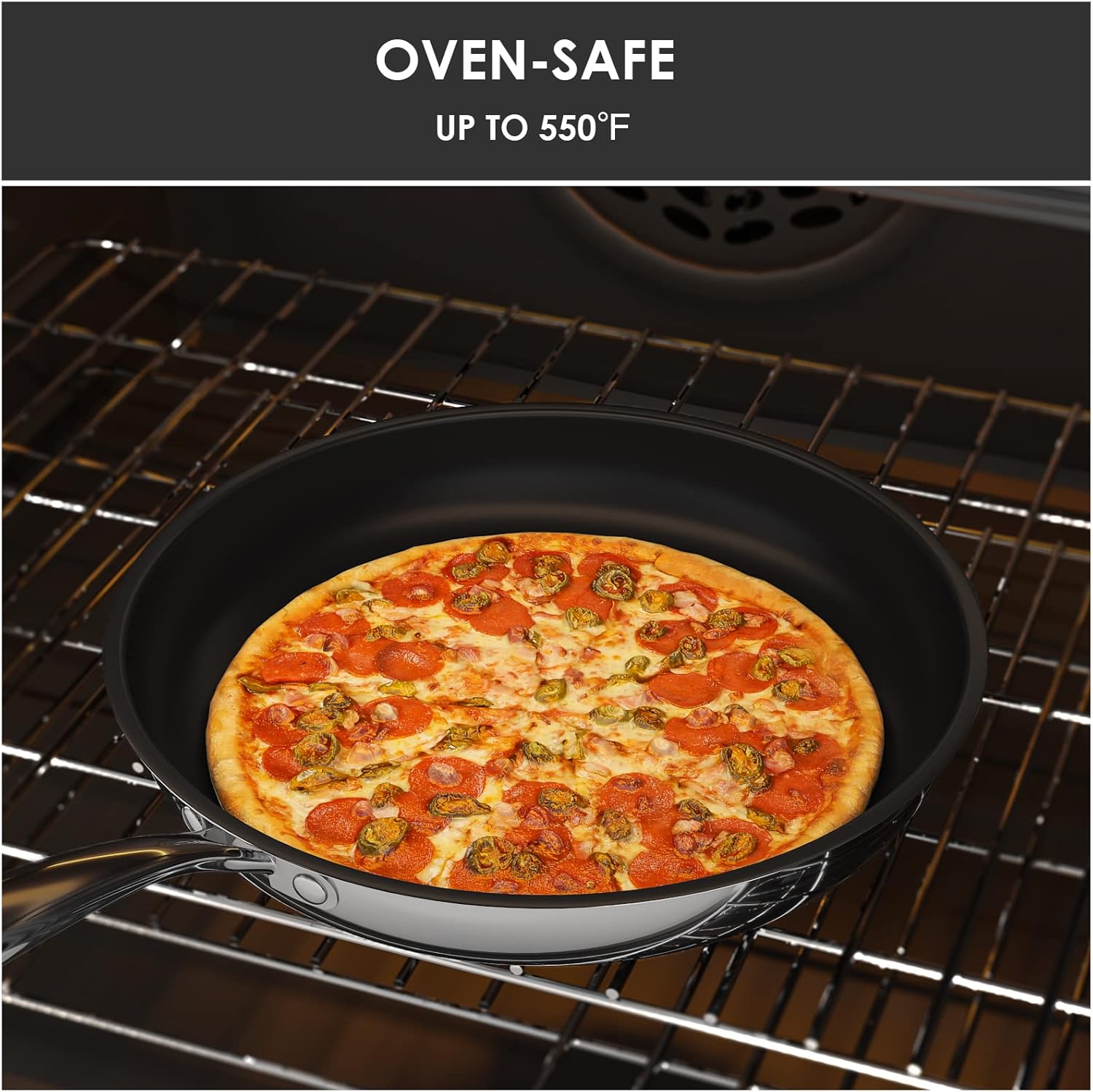 - Oven safe up to 550°F: Induction compatible and works on gas, electric, glass, ceramic, halogen, etc. You can use this skillet on a cooktop and then put it in the oven without transferring the food to another oven-safe dish. (Do not put the lid into the oven)