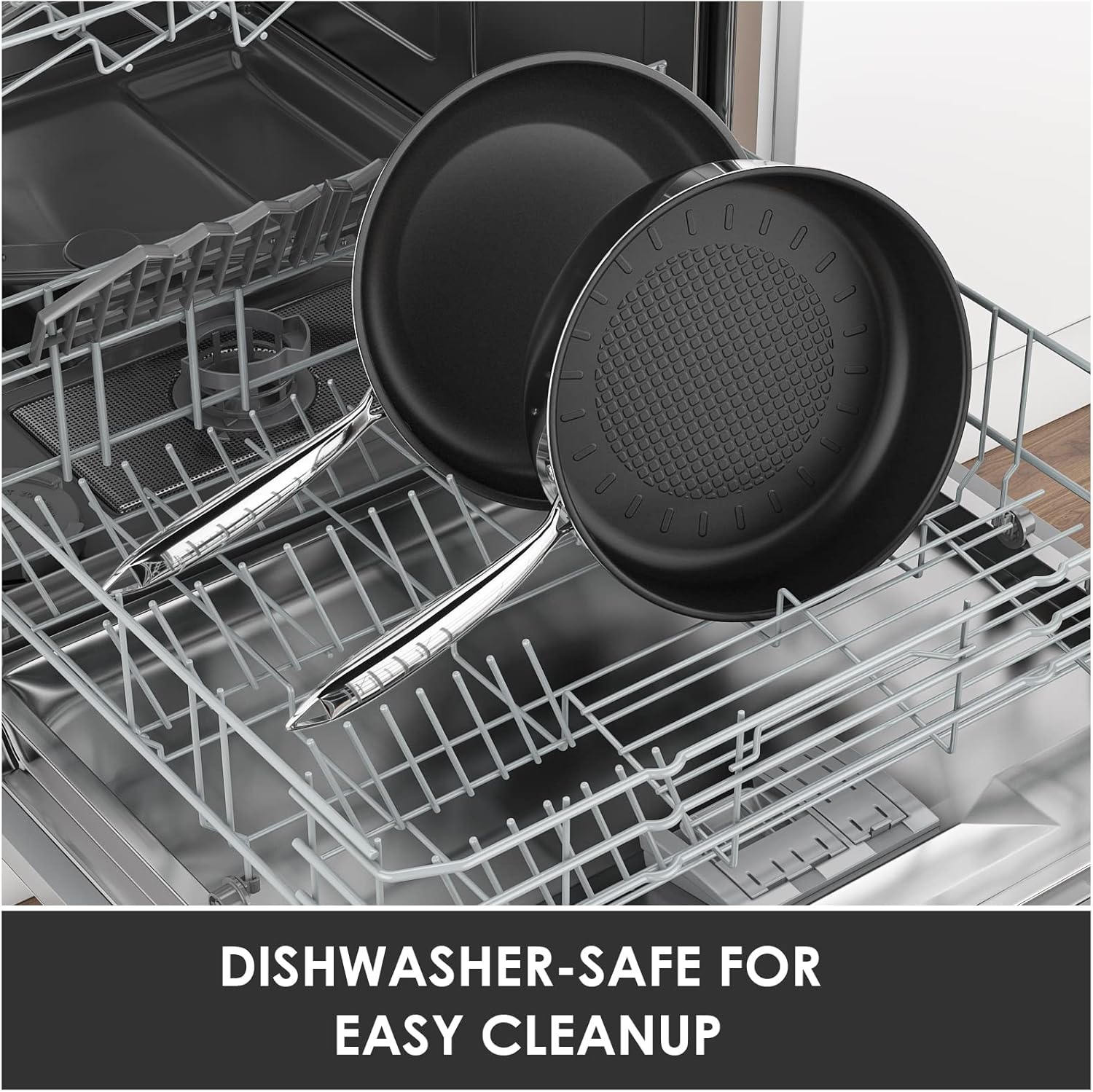- Dishwasher safe: Spend less time to cleanup, put the pan set into the dishwasher for a quick cleaning after finish cooking.
