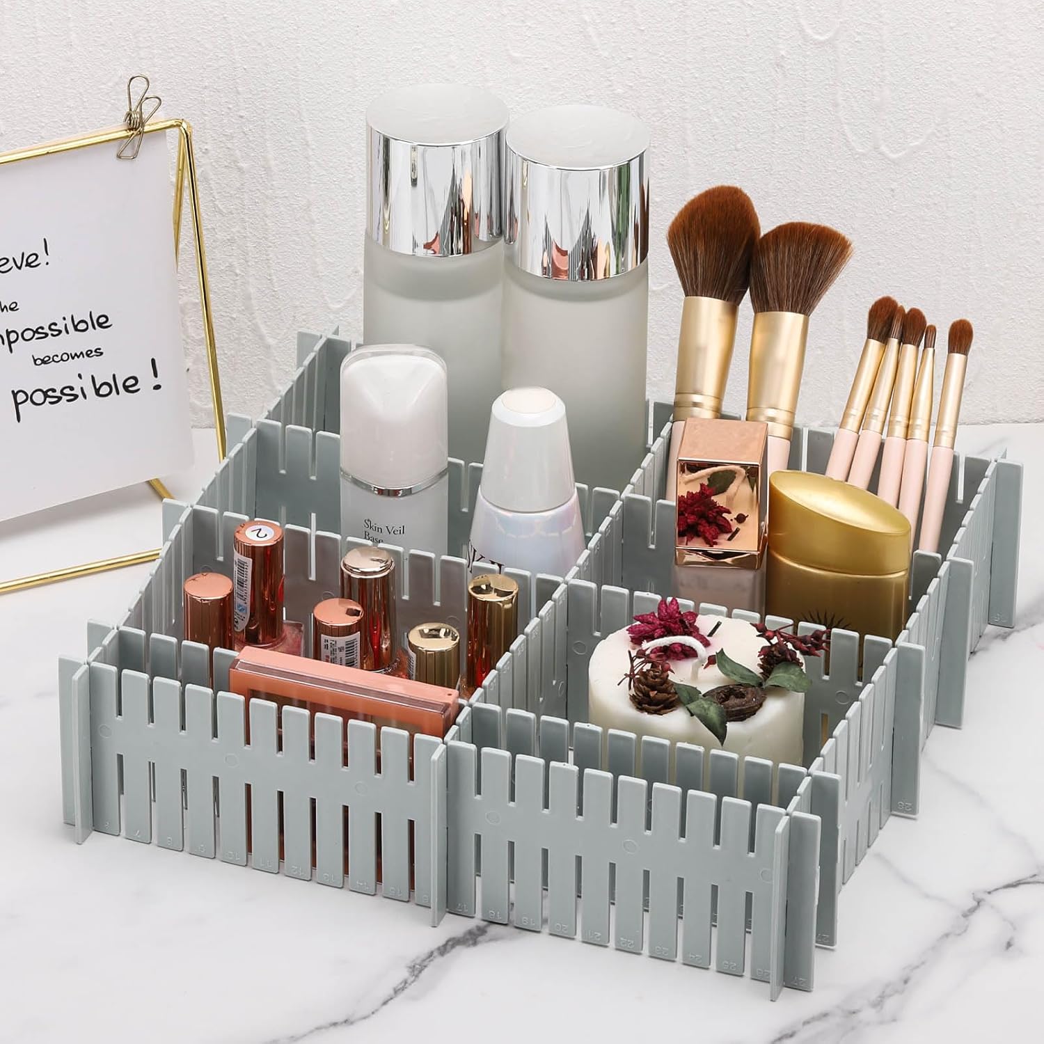 acDesign 40Pcs Grid Drawer Dividers, Adjustable Drawer Organizer for Socks, Underwear, Lingerie, Makeup, Bedroom Office Kitchen Storage (Grey)