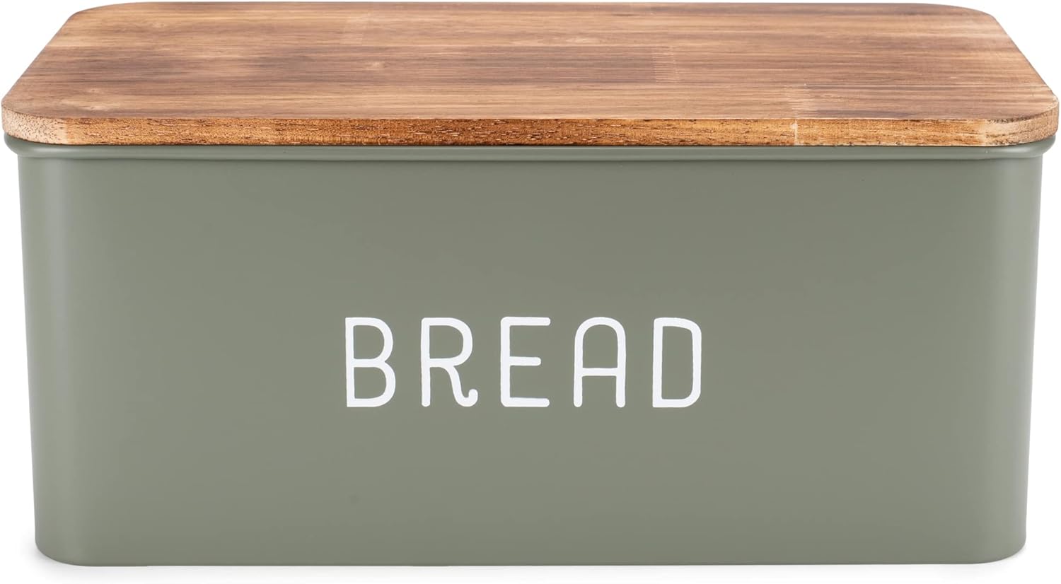 Nat & Jules Matte Green 12 x 7 Metal Enamel Rubber Wood Lidded Bread Box
