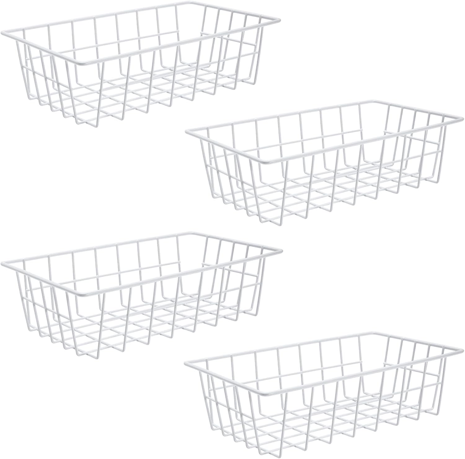 Orgneas Freezer Organizer Bins Metal Wire Storage Baskets for Upright Refrigerator Chest Freezer, Kitchen Pantry Storage and Organization for Fruit Vegetable Soda Cans Toys and Snacks, Set of 4