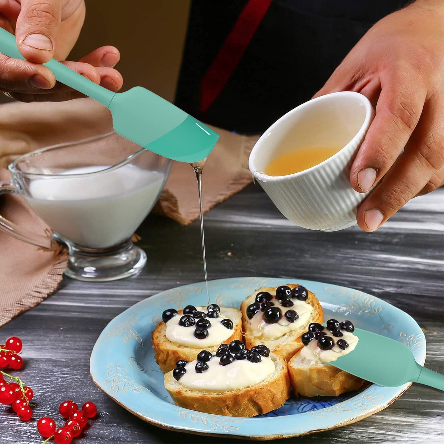 - [Stronger & More Flexible]: Coukre Silicone Spatula has a reinforced plastic core inside for extra strength. and they are flexible tip thoroughly scrape the sides and bottoms of the pots and pans without scratching