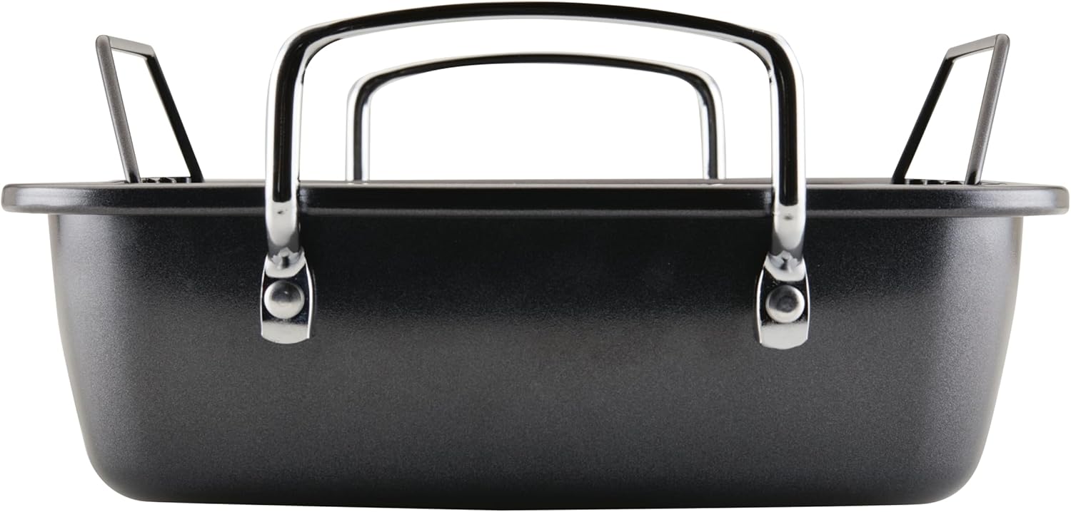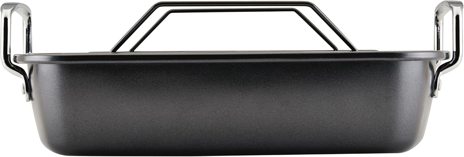 Circulon Ultra Lasting Nonstick Roaster/Roasting Pan with Easy Serve Rack, 17 Inch x 13 Inch, Black