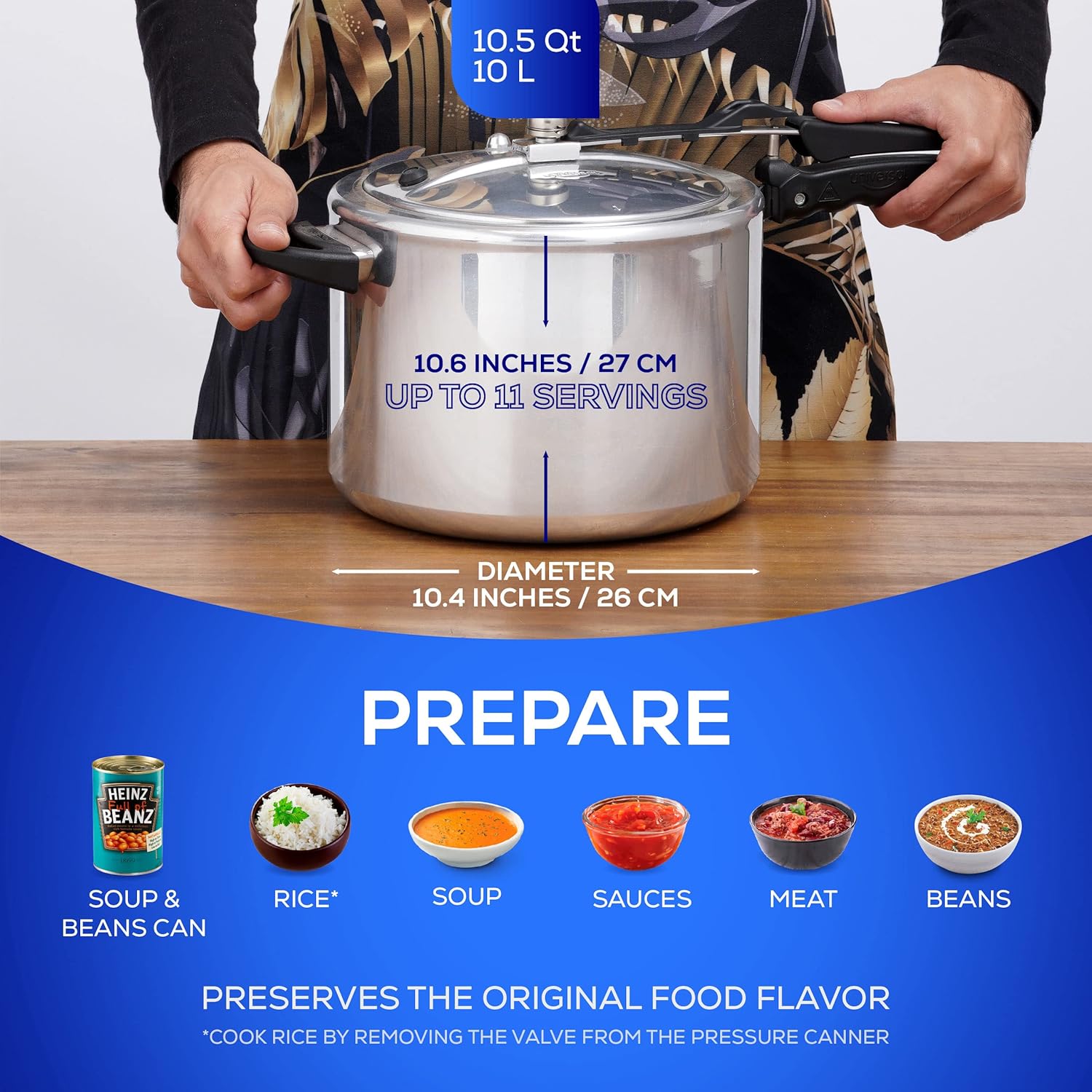 Universal (10.5 Quart / 10 Liter) Pressure Cooker, 11 Servings, Aluminum Pressure Cooker With Multiple Safety Systems and Heat Resistant Handles For Stews, Soup, Meat, and Beans
