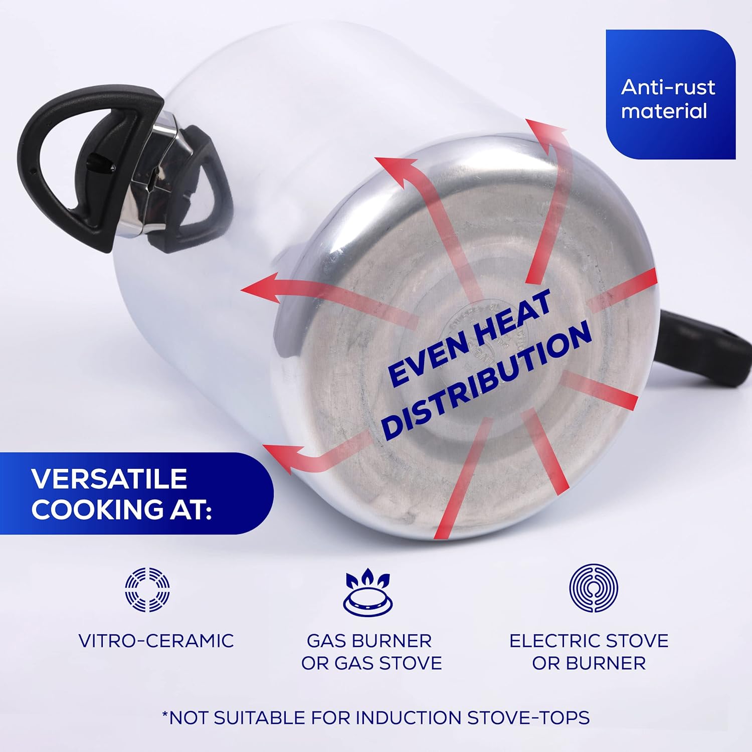 - Designed for Home & Professional Use – Versatile Stovetop Compatibility: Whether in a family kitchen, restaurant, or catering environment, this pressure cooker performs exceptionally on gas, electric, and glass-ceramic stovetops. (Not suitable for induction cooktops.)