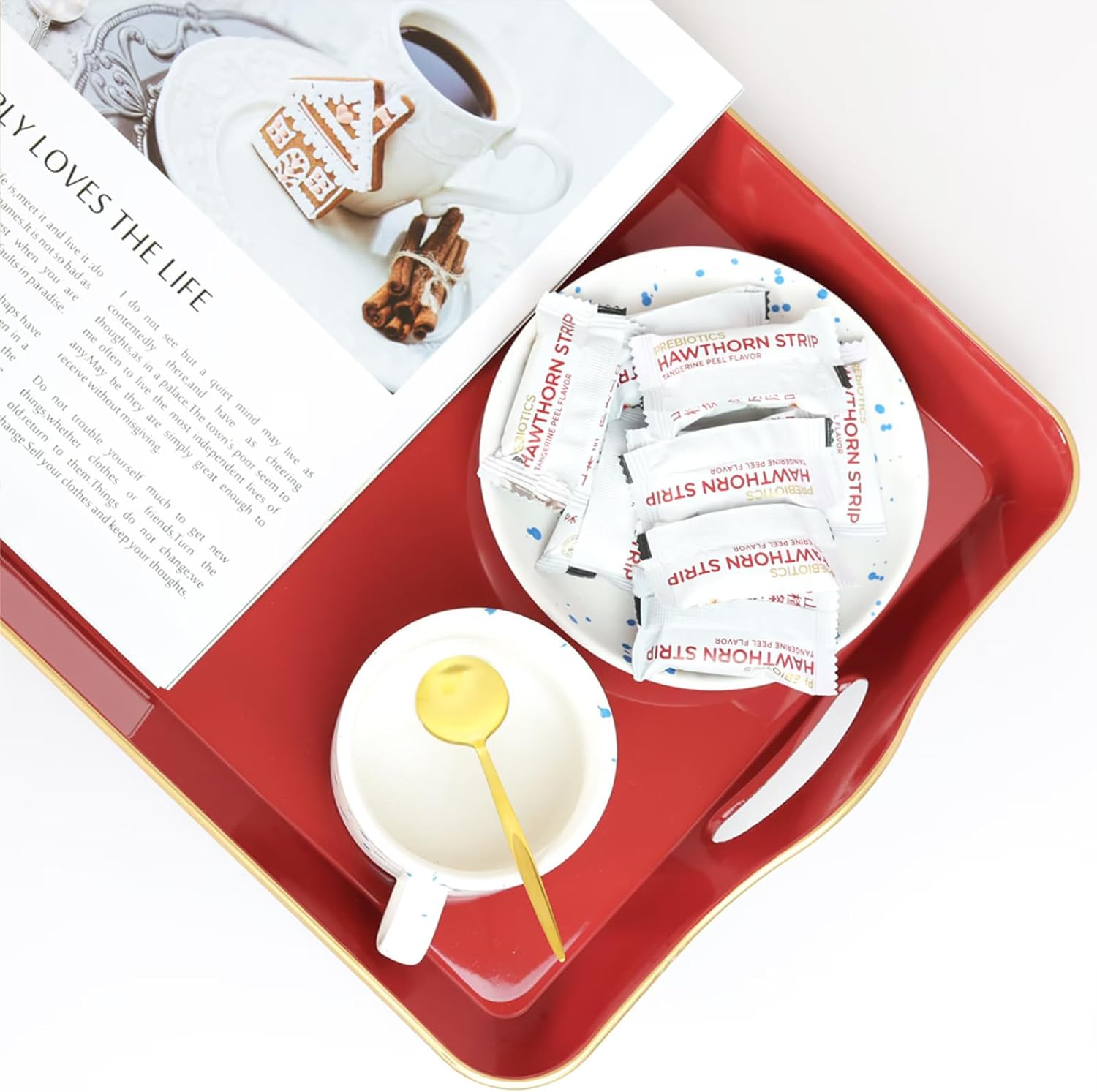 Spsyrine Large Red Decorative Tray, Elegant Plastic Serving Tray with Handles, Coffee Table Tray for Ottoman, Living Room, Home Decor 17.3"*11.8"*2"