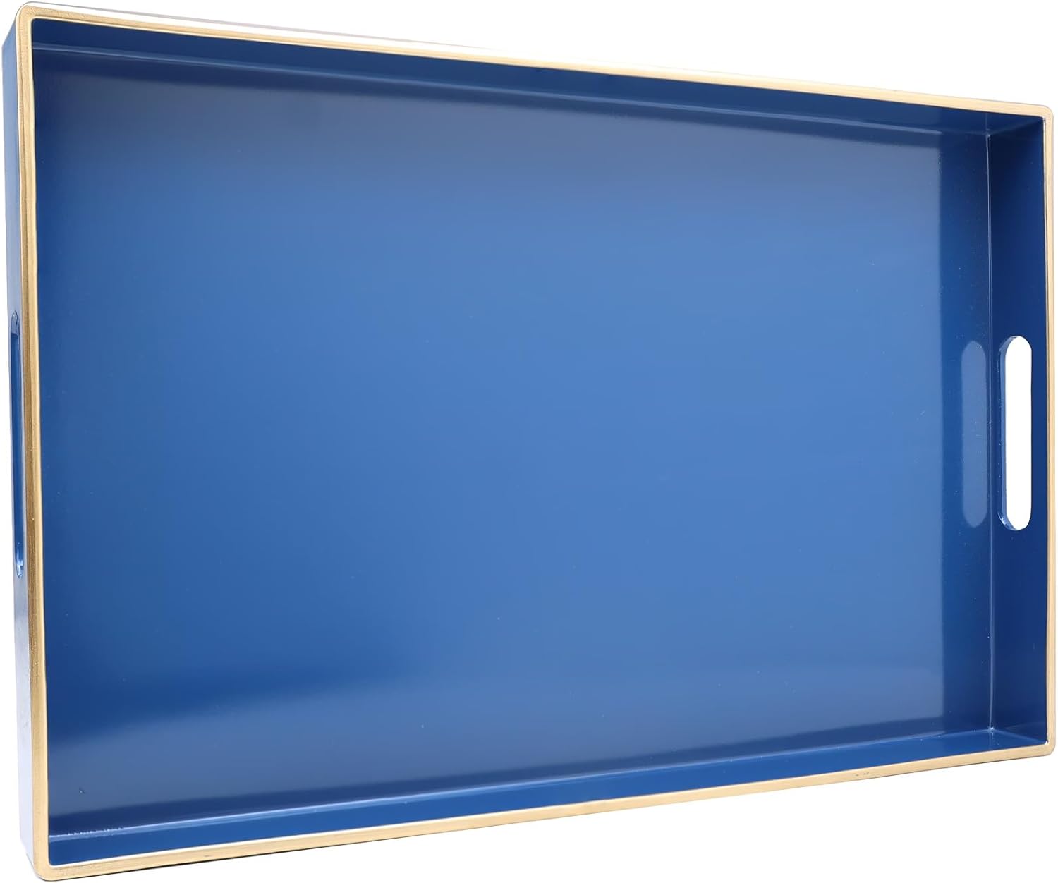 Spsyrine Blue Decorative Serving Tray with Handles, Elegant Plastic Coffee Table Tray for Ottoman, Living Room, Home Decor 15.6" X 10.2"