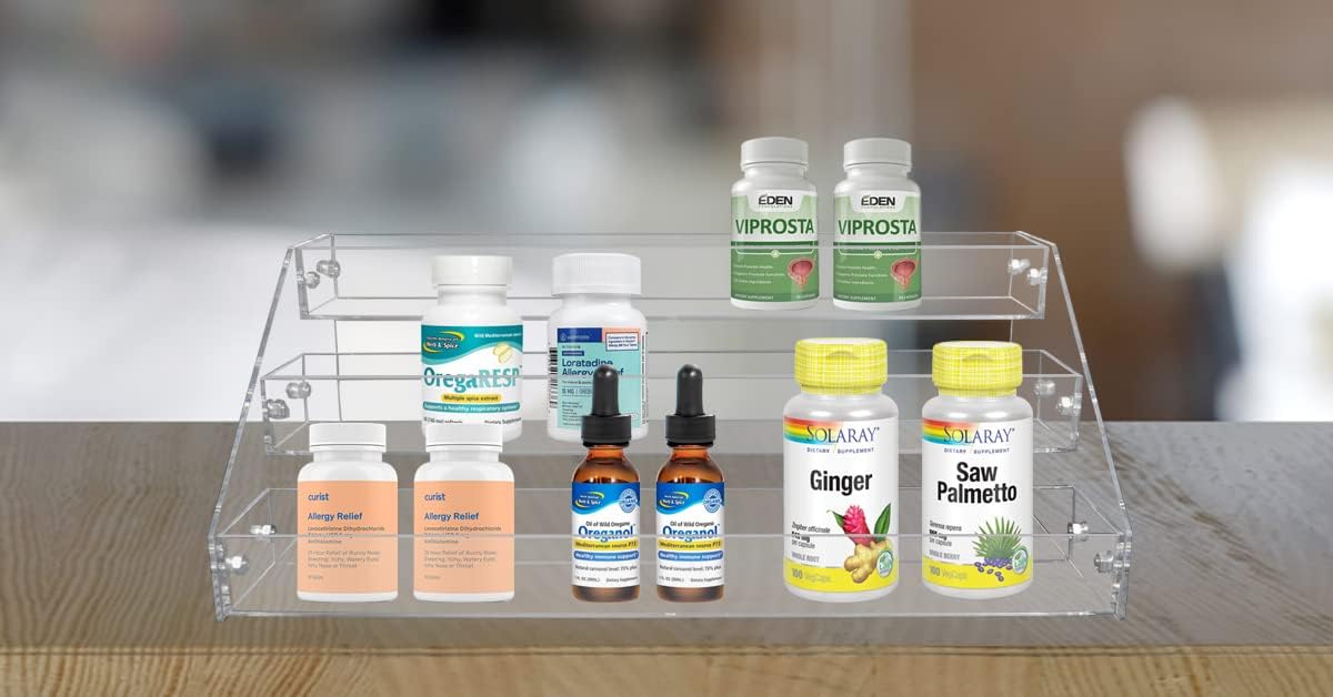 - MULTIPLE FUNCTIONS: The acrylic tiered spice racks allows you to easily locate and obtain the items you need; It can be used to storage and organize spice jars, sauces, bottles, medicine bottles, etc