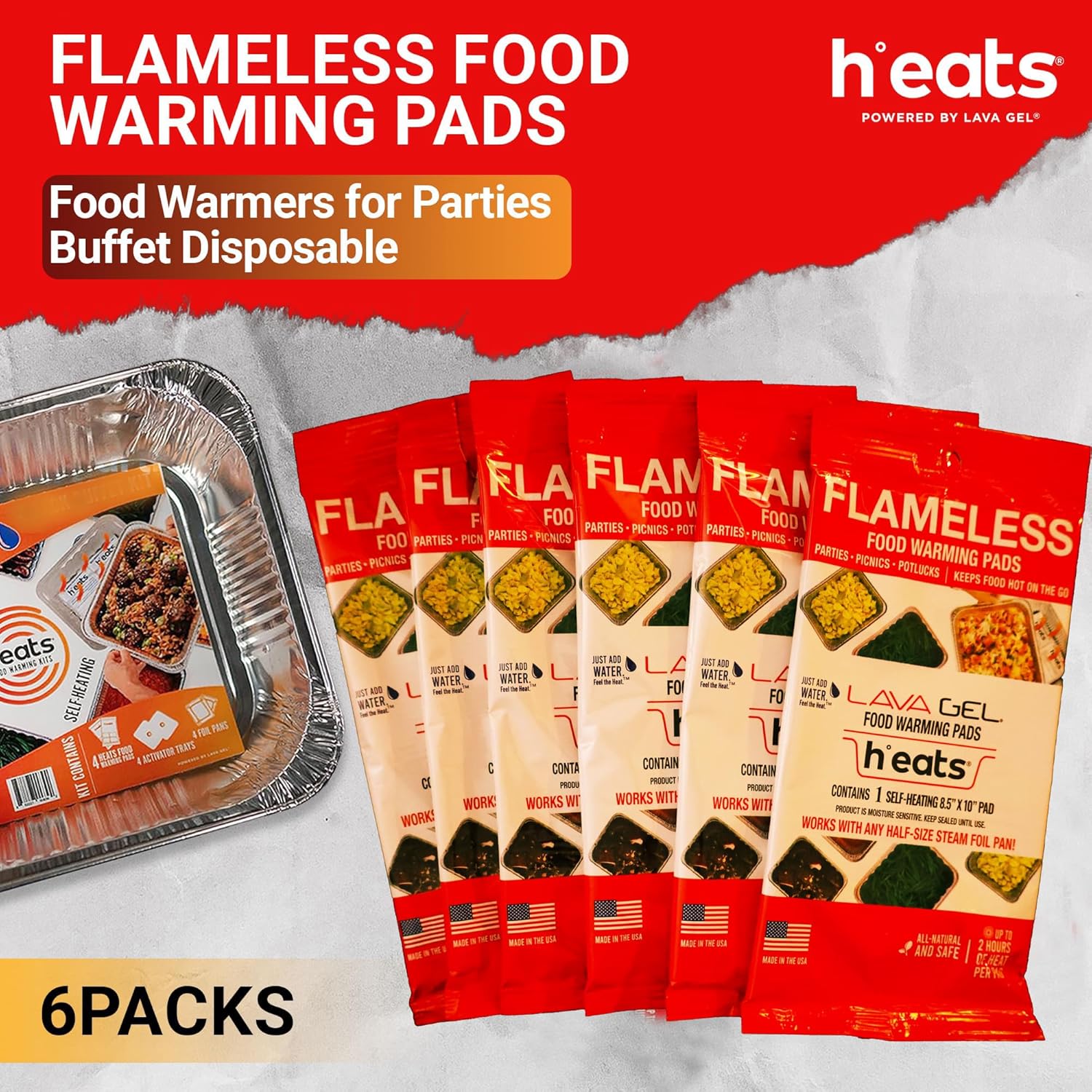 - Disposable Food Warming Pads: Available in packs of 6, our h°eats pads provide a convenient solution for all your food warming needs, whether for parties, potlucks, or daily kitchen use, ensuring your meals stay deliciously warm for extended periods.