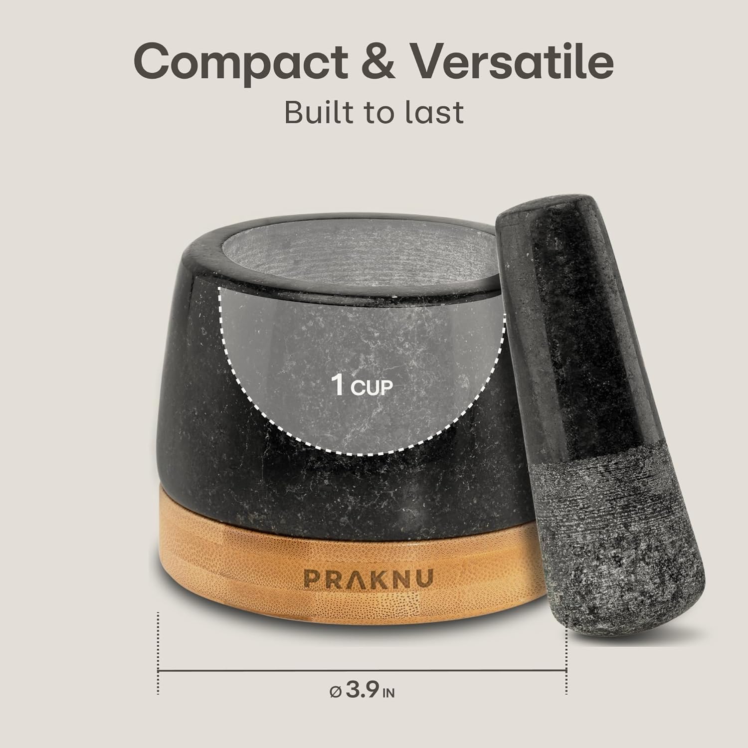 Mortar and Pestle Set Small - Heavy-Duty 1 Cup Stone Grinder for Spices, Herbs & Guacamole - Durable Granite - Non-Slip Wooden Base - Effortless Grinding & Easy to Clean