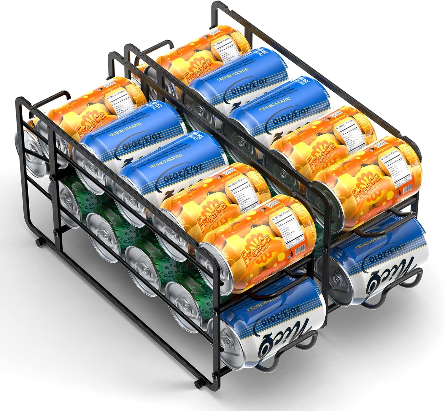 - 【Sturdy & Stable Construction】The soda can dispenser rack is made of strong alloy steel with a powder-coated surface, which makes this can organizer sturdy and rust-resistant. The construction remains strong and stable when these 2 pack soda can organizer stacked together