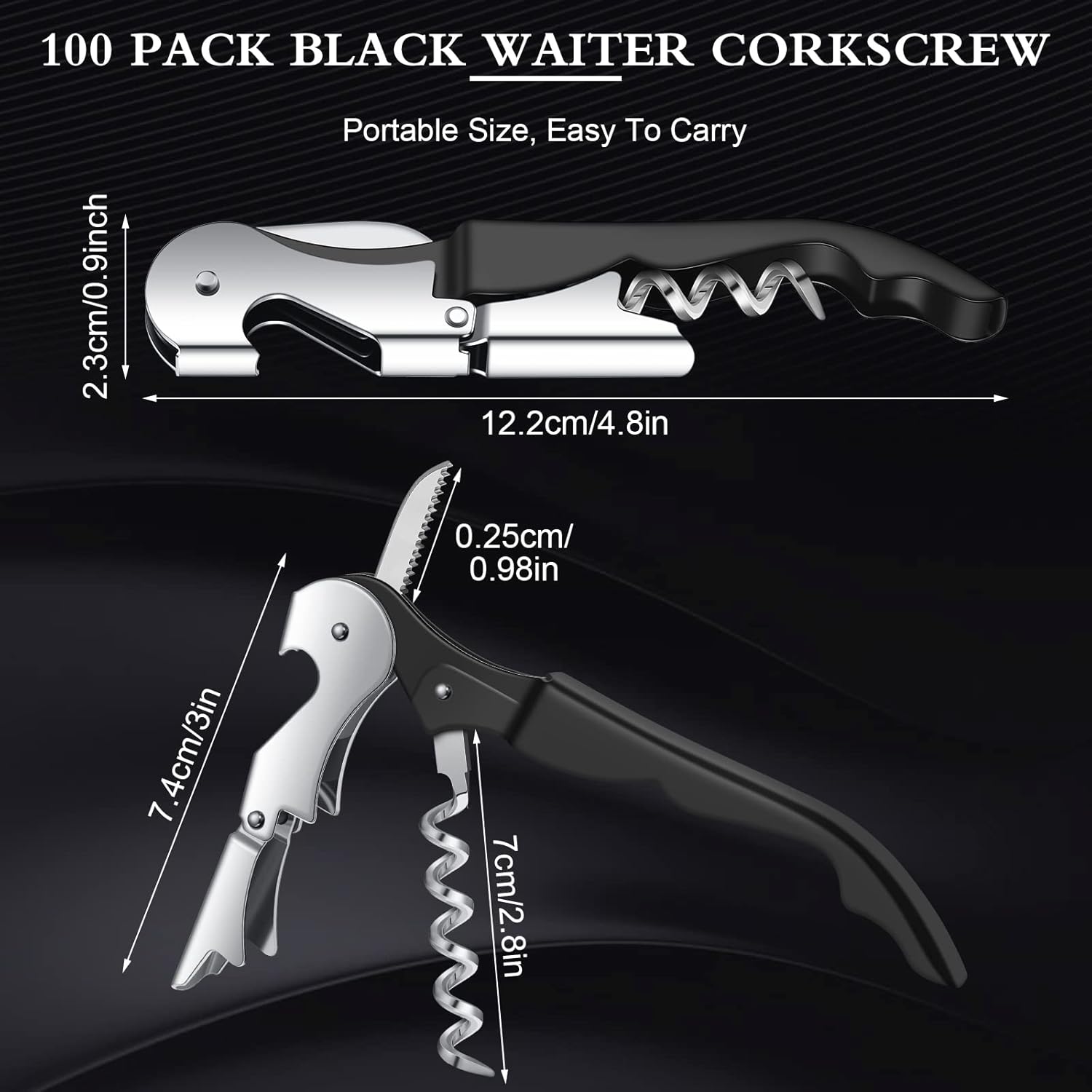 Waiter Corkscrew Wine Openers Heavy Duty Hinges Wine Key Bottle Opener All in One Double Hinged Waiter's Corkscrew with Foil Cutter Wine Tools for Bartenders Servers Sommelier (Black, 100 Pack)