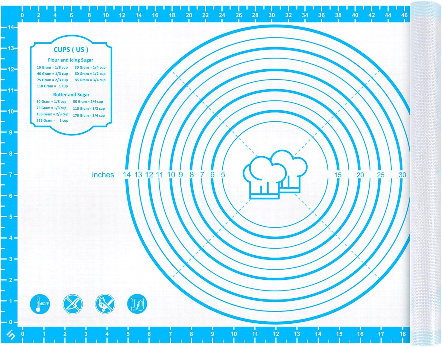 Silicone Pastry Mat,26" x 16" Nonstick Large Durable Silicone Sheet Mat with Measurement Non-slip Dough Rolling Mat for Pie Crust, Pizza, Cookies