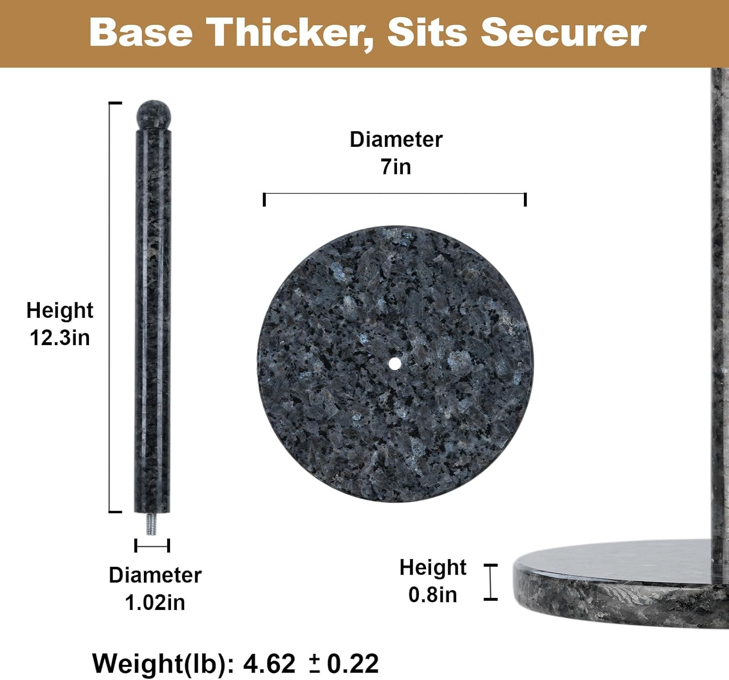 - Sturdy and Durable: Koville’s high quality paper towel holder(4.29pounds), the upgraded base(7") is made of heavy marble polished, smooth and delicate touch surface, keep the paper towel holder sturdy and won't tip over.