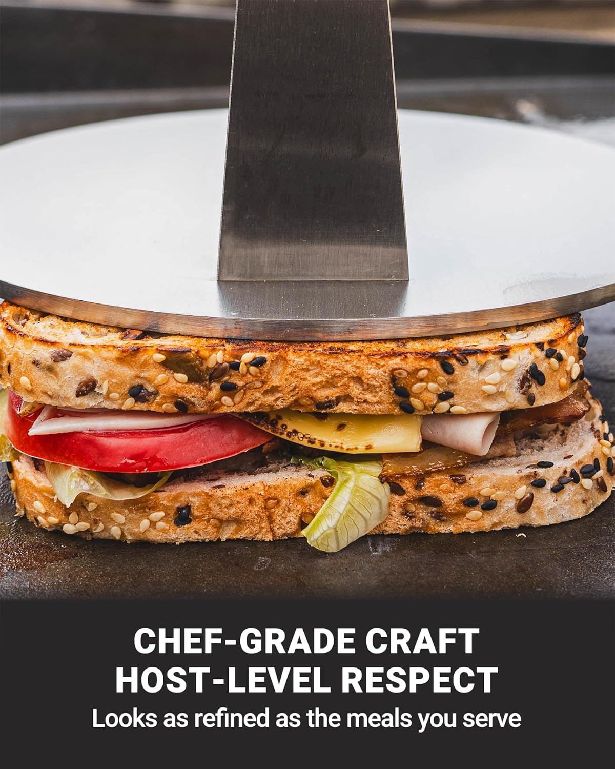- BEYOND SMASHBURGERS, ENHANCE EVERY DISH: Our heavy-duty grill press ensures food stays close to the heat, cooking evenly and boosting flavor development, especially in protein-rich foods like steak, bacon, chicken, and fish