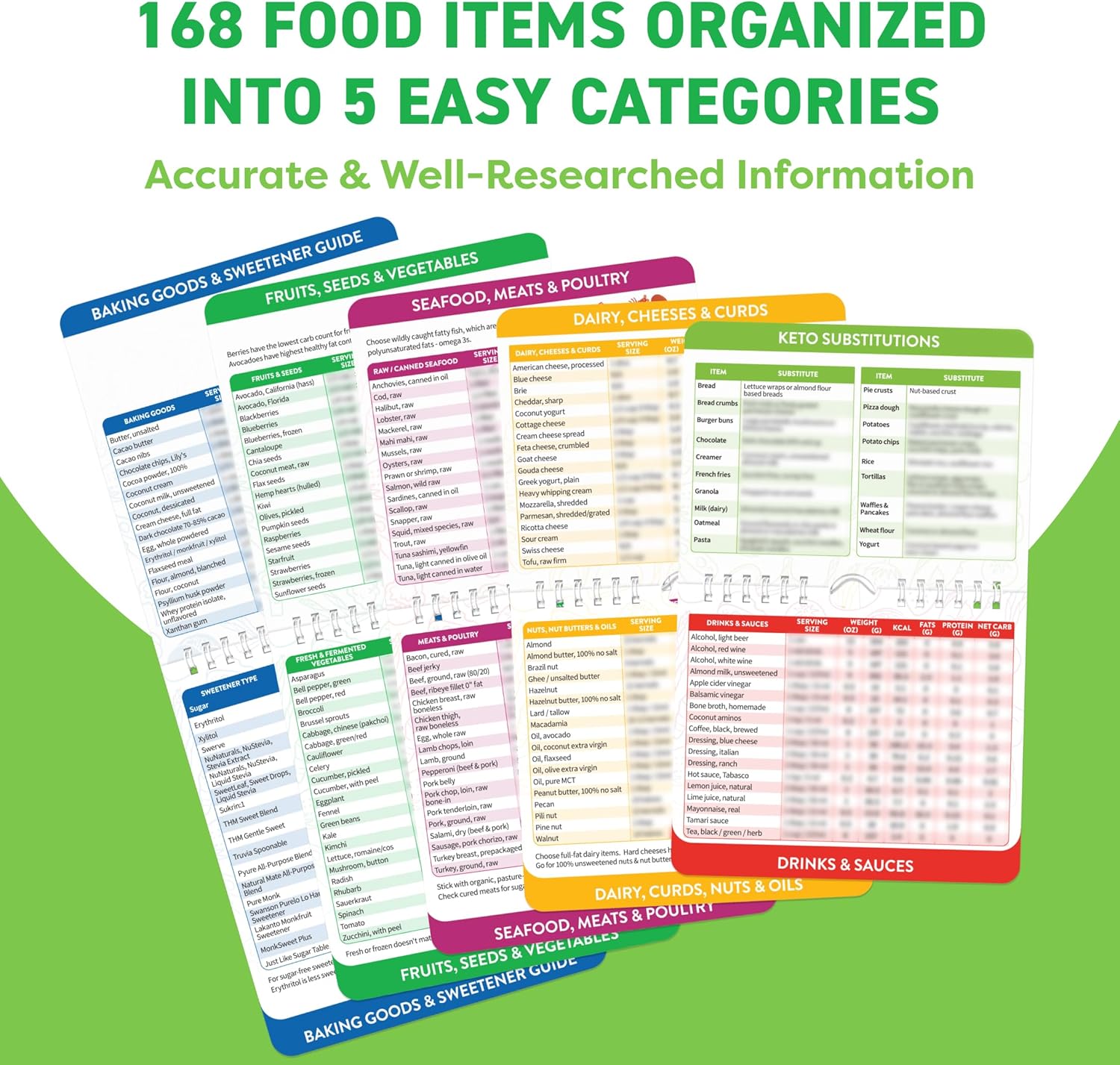 - Simple & Effective Keto Cookbook Guide. This magnetic keto cheat sheet is the perfect keto diet book for beginners, giving quick access to categorized keto food list charts for smarter meal planning and tracking. Designed to support a keto-friendly lifestyle, it aligns with low carb and sugar free dietary needs, making it a practical household reference for guilt-free keto snacks and meals on the go.