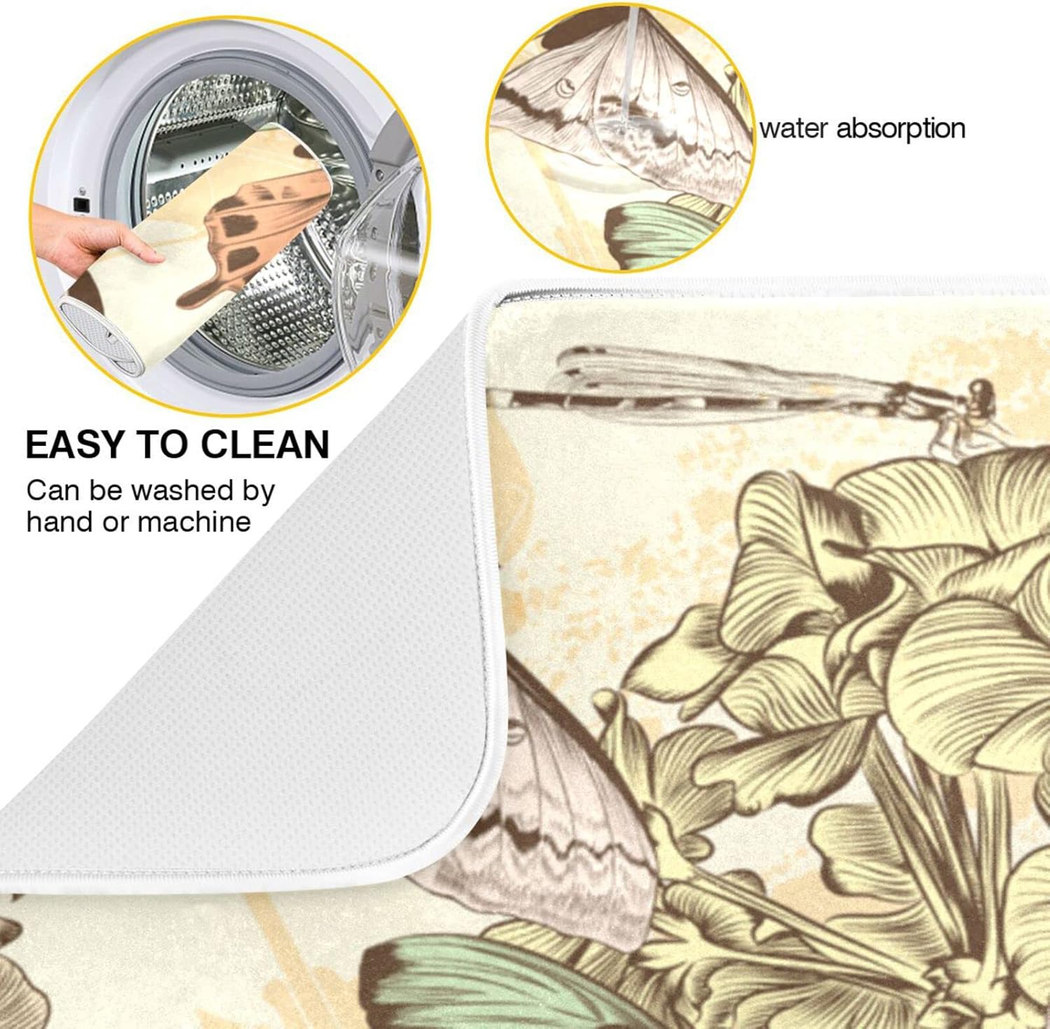senya Super Absorbent Dish Drying Mat, Microfiber Fast-Drying 24'' x 18'', Kitchen Pad, Retro Butterfly