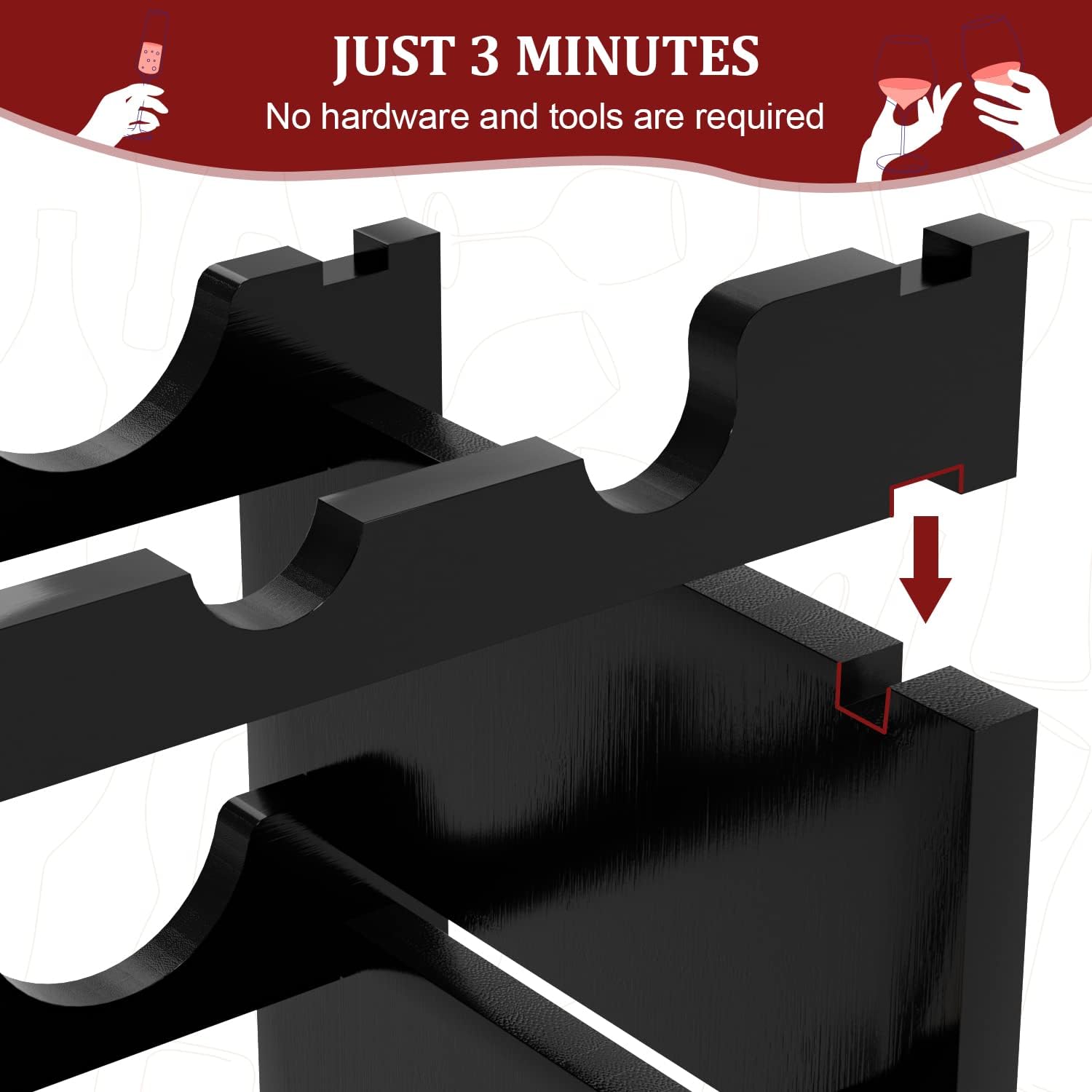 - EASY ASSEMBLY: No tool intervention is required. Just follow the assembly instructions to combine the partitions in order, and you can have an elegant wine holder in about 3 minutes.