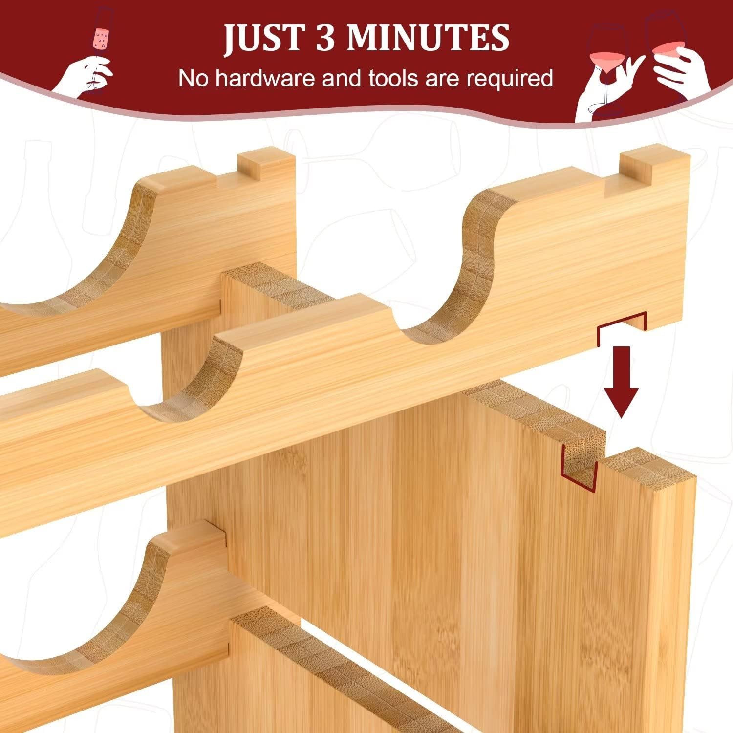 - EASY ASSEMBLY: No tool is required. Just follow the assembly instructions to combine the partitions in order, and you can have an elegant wine holder in about 3 minutes.