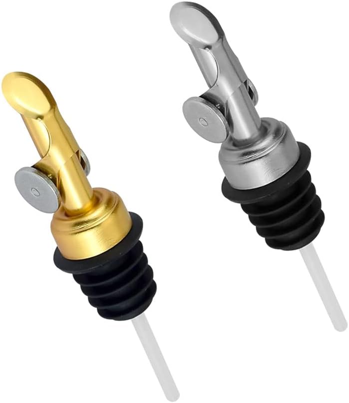 MEETSWEET olive oil spout, olive oil dispenser spout, stainless steel automatic opening and closing spout, leak-proof, for olive oil, vinegar, wine and other liquid bottles (silver1pcs,gold1pcs)…