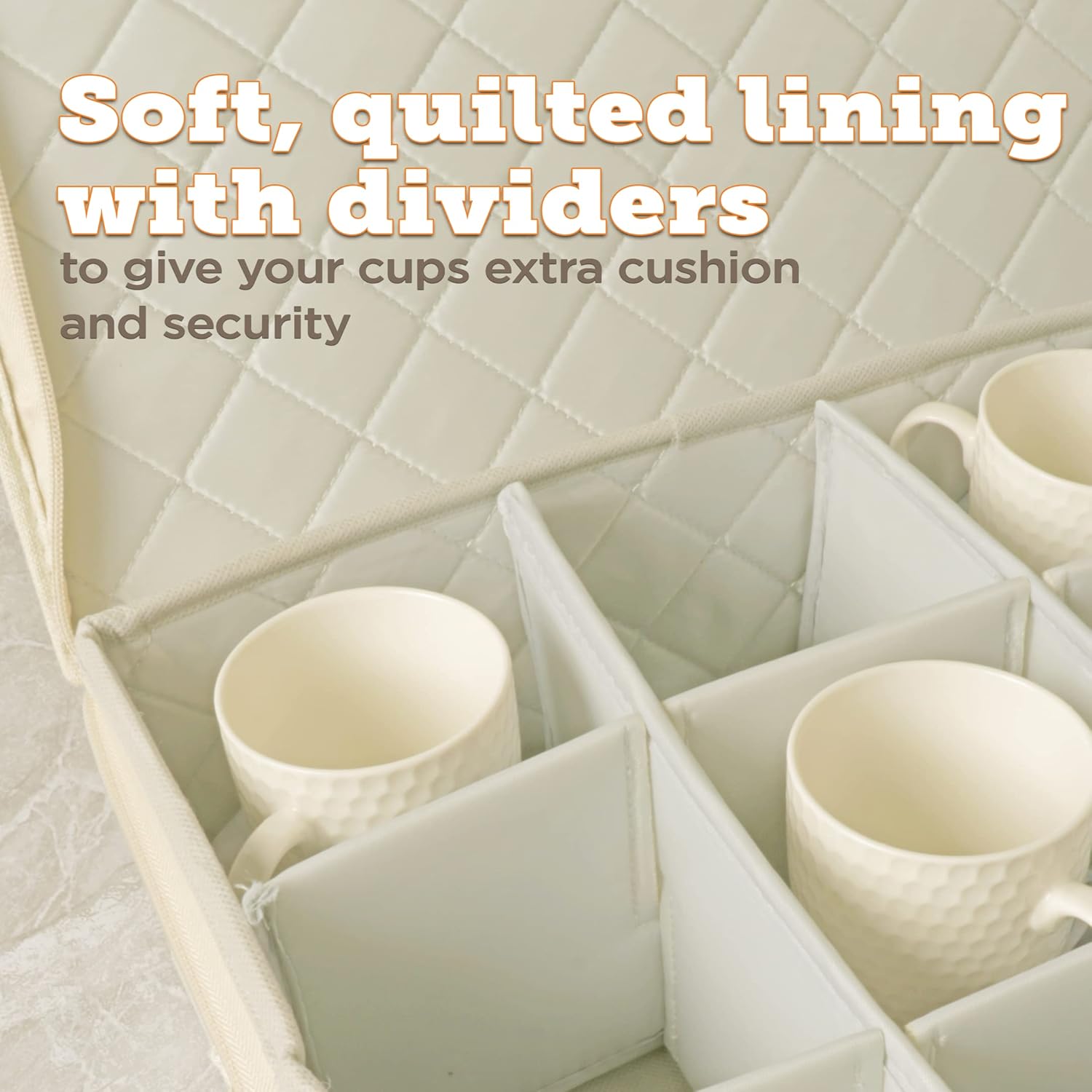 - CARRY WITH EASE. The easy-grip textured fabric of our cup and mug organizer makes carrying it a breeze. Its top-loading design lets you load and unload your china coffee mugs quickly and safely.