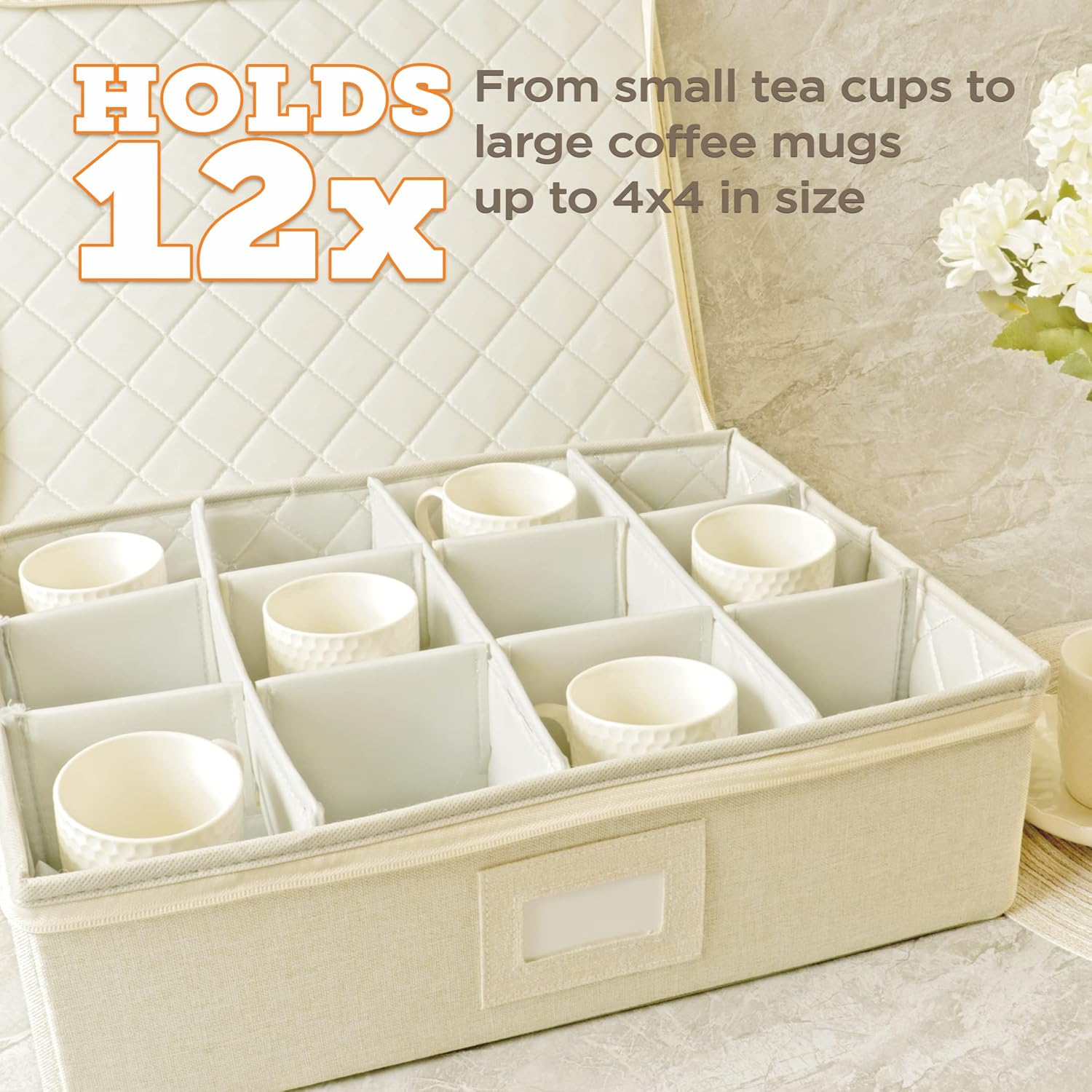 storageLAB Cup and Mug Storage Containers, Hard Shell Storage Case with Felt Dividers for Cups, Mugs, Dishes, and Glasses, Ideal for Kitchen Organizing and Moving Supplies - 1 Pack, Cream