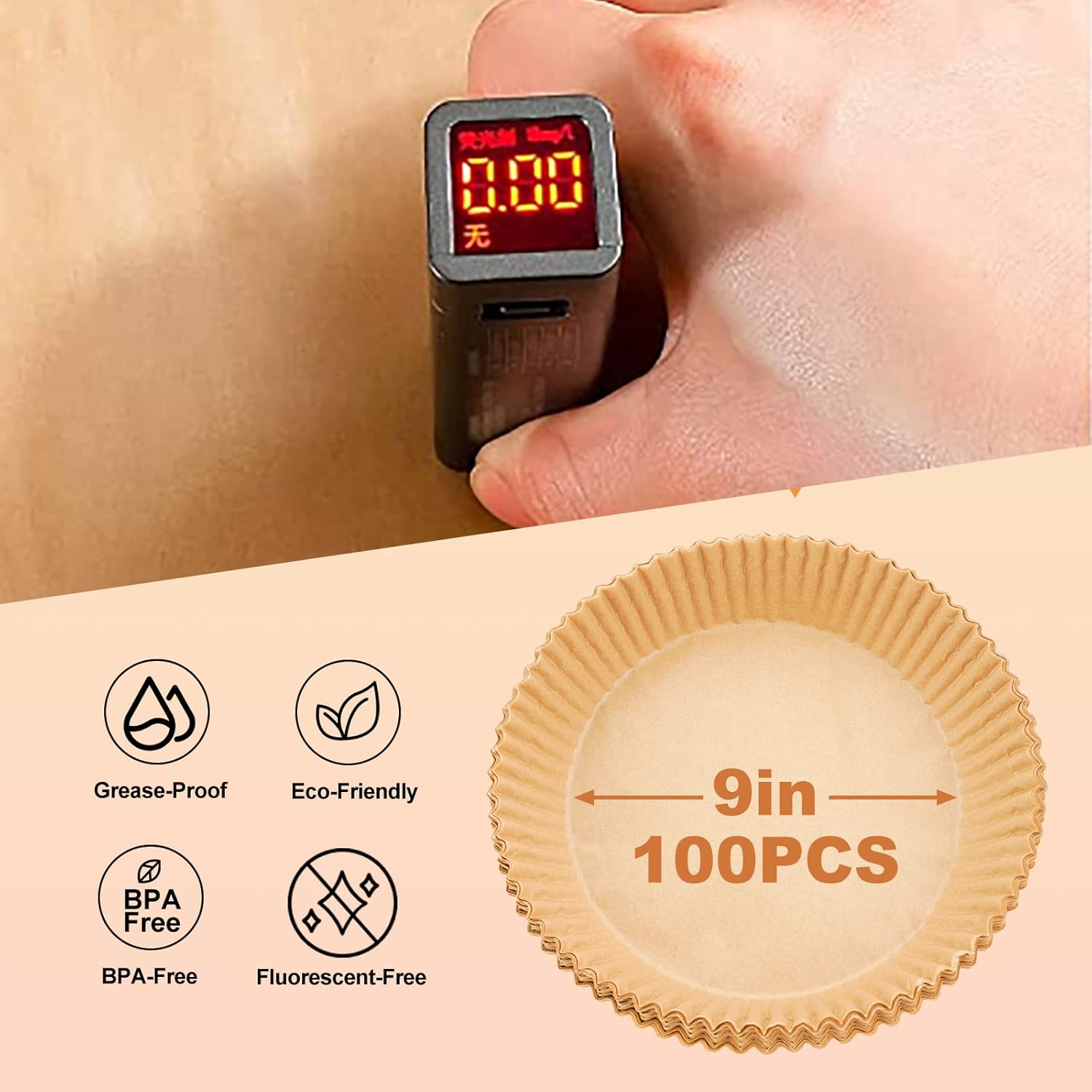 - Simple to Used: Large 9 In round airfryer baking paper good for better food containment, no need to tear, fold, cut or bend, just put them in when you are ready to cook. Simply throw away the paper after use to keep your air fryer free of food residue