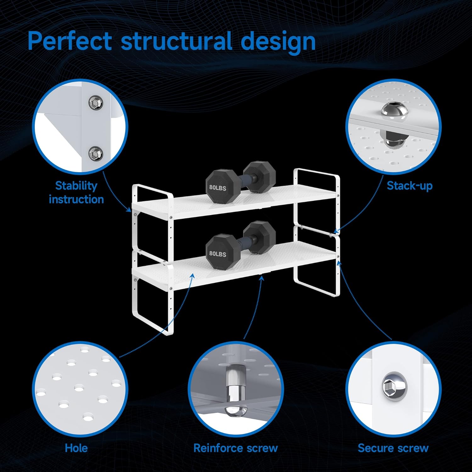 Expandable Cabinet Shelf Organizer Adjustable Metal Spice Rack Stackable Freestanding Counter Storage Shelves for Kitchen Cabinet Under Sink Office Desk (White - 2Pack - L16.5-27'' * W8'' * H9.6'')