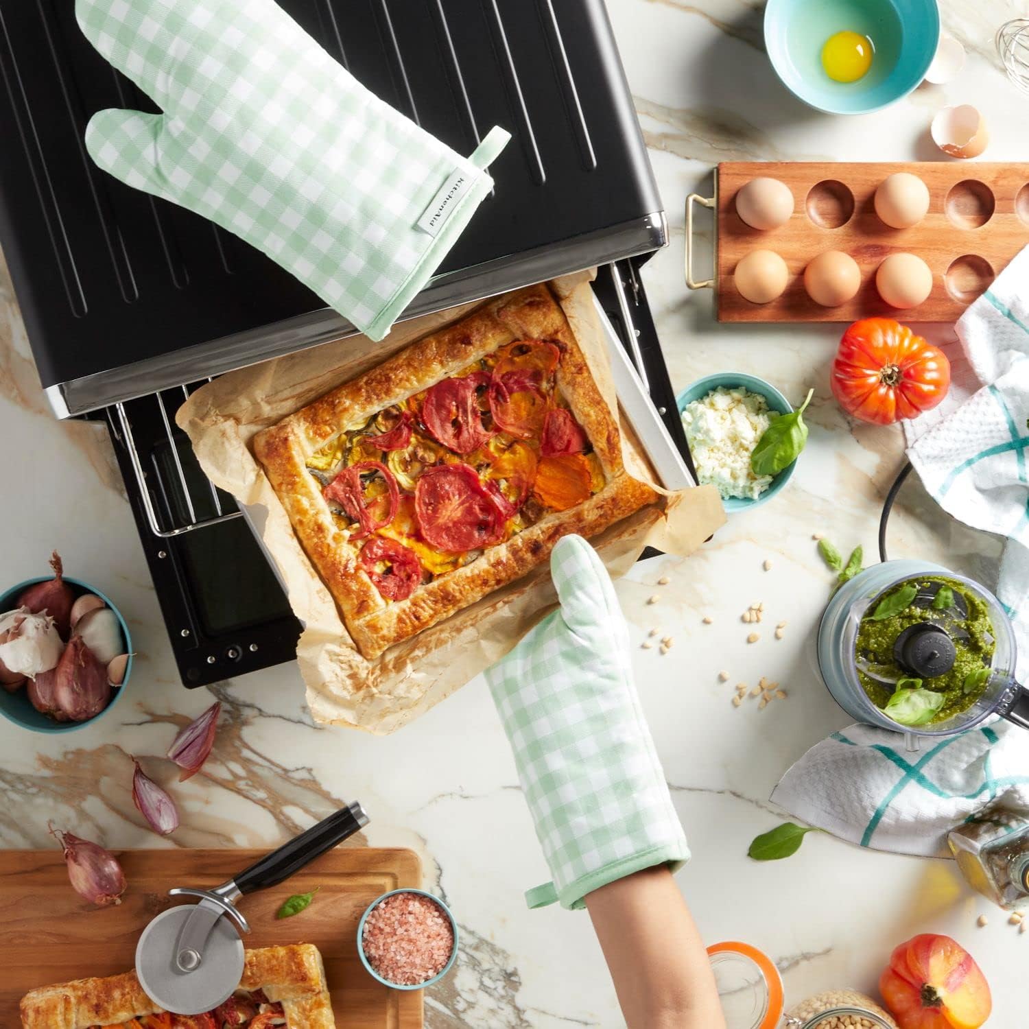 KitchenAid Gingham Oven Mitt 2-Pack Set, Pistachio, 7"x13"