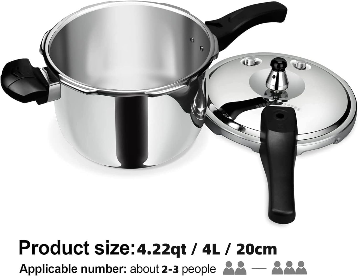 - ✅[Crafted from top-grade stainless steel and durability]-Our Stainless Steel Pressure Cooker 4 quart guarantees food safety and prevents any harmful reactions with your ingredients. Keep all the nutrients and flavors intact the healthier way! 4.22qt pressure cooker boasts quality stainless steel components and ergonomic handles for rust resistance and heat endurance.